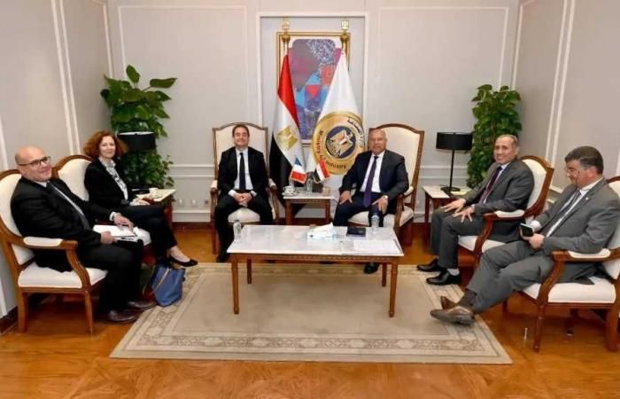 التقى الفريق مهندس/ كامل الوزير نائب رئيس مجلس الوزراء للتنمية الصناعية وزير الصناعة والنقل السيد/ إيريك شوفالييه السفير الفرنسي والسيدة / ماجالي سيزانا، رئيس قسم الشئون الثنائية وتدويل الشركات بالإدارة العامة للخزانة التابعة لوزارة الاقتصاد والمالية والصناعة بفرنسا لمتابعة آخر مستجدات مشروعات النقل المشتركة الجاري تنفيذها وذلك بحضور المهندس/ وجدي رضوان نائب وزير النقل للسكك الحديدية والجر الكهربائي و الدكتور / طارق جويلي رئيس الهيئة القومية للانفاق والسفير/ أحمد رزق مستشار وزير النقل للتعاون الدولي والمهندس / وائل نعيم مساعد وزير النقل.