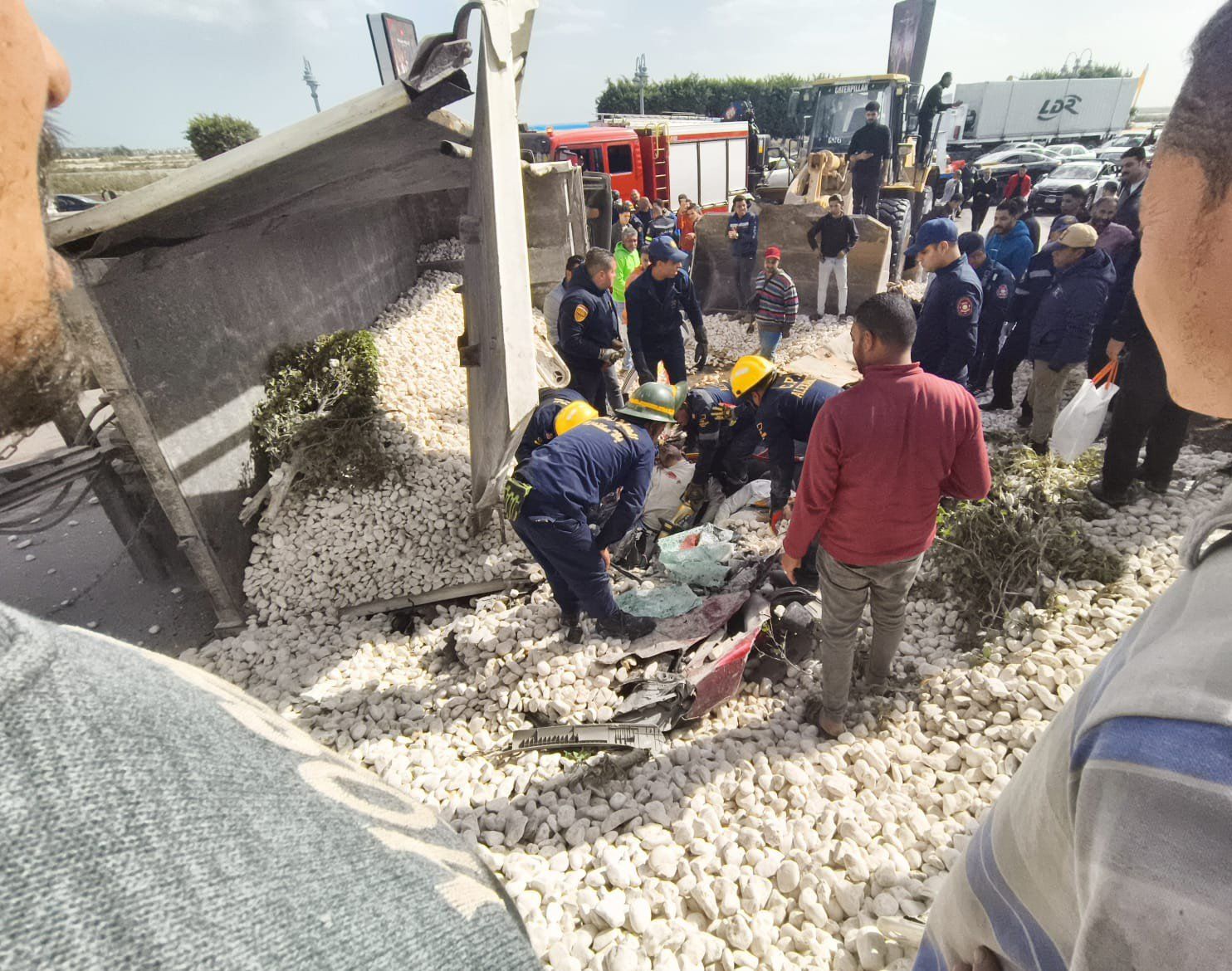 انقلاب سيارة نقل علي ملاكي في الإسكندرية