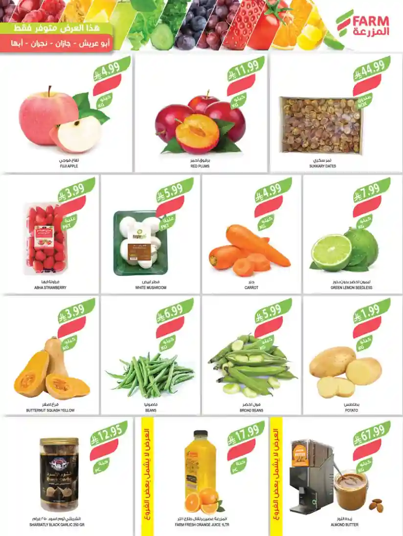 - الخضراوات والفاكهة من عروض اسواق المزرعة السعودية