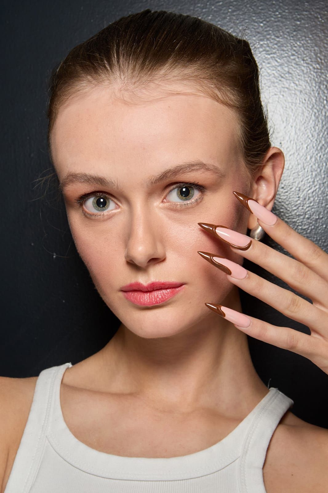 مناكير وردي فاتح مع أطراف بنية.. أناقة رومانسية بتباين ساحر