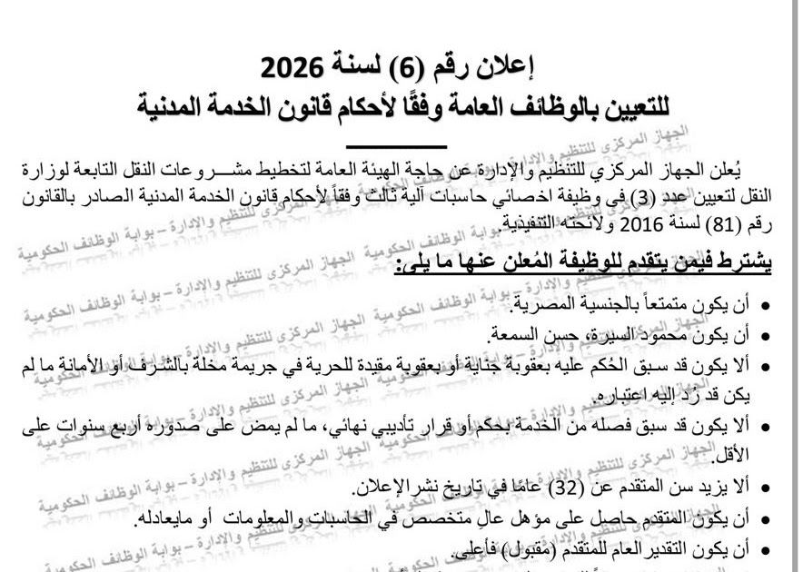 ملحوظة: مضمون هذا الخبر تم كتابته بواسطة وظائف ولا يعبر عن وجهة نظر مصر اليوم وانما تم نقله بمحتواه كما هو من وظائف ونحن غير مسئولين عن محتوى الخبر والعهدة علي المصدر السابق ذكرة.