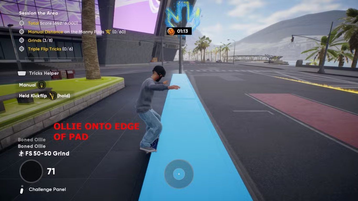 يتطلب هذا الهدف من اللاعبين تنفيذ ثماني حركات Grind كاملة. تُعد حواف منصات Manny Pads من أفضل الأماكن المناسبة لتنفيذ هذا النوع من الحركات، حيث توفر سطحًا مستقرًا وحافة واضحة تساعد على بدء الـGrind بسهولة.
