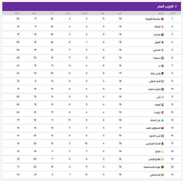 جدول ترتيب الدورى المصرى الممتازجدول ترتيب دورى نايل