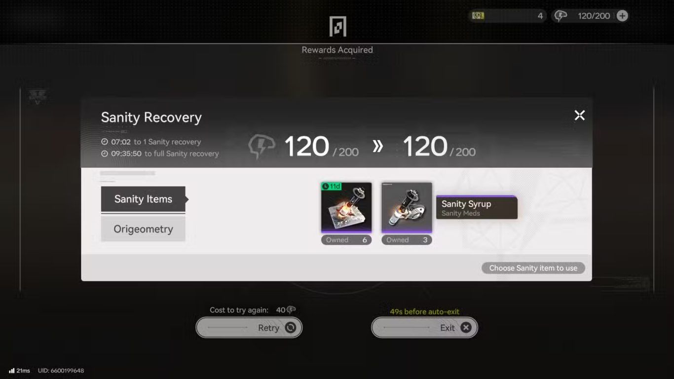 تسمح بعض العناصر والعملات داخل اللعبة باسترجاع Sanity بشكل مباشر مما يمنح اللاعب فرصة مواصلة farming الموارد وتنفيذ المهمات دون انتظار فترات الاستعادة الطبيعية وهو أمر مفيد عند الرغبة في استغلال الوقت داخل اللعبة بأقصى قدر ممكن.