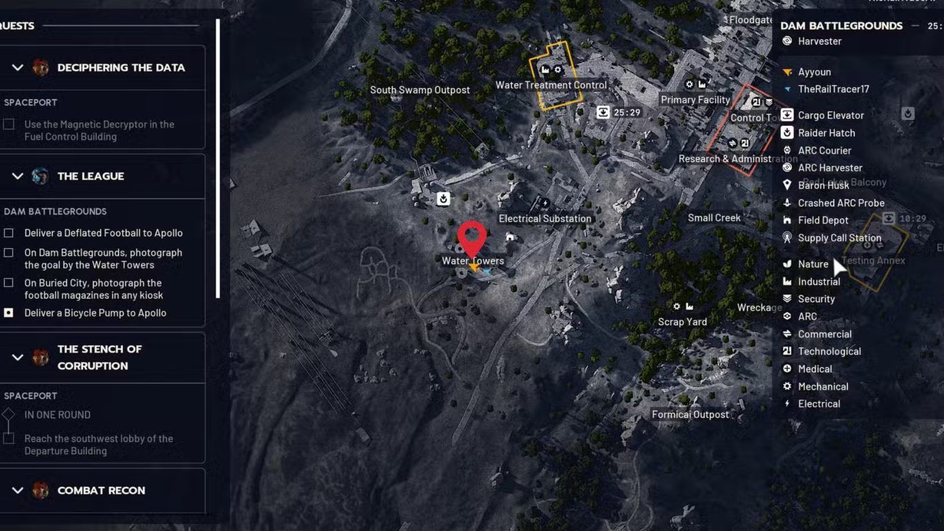 طريقة تصوير المرمى قرب Water Towers في مهمة The League في لعبة ARC Raiders