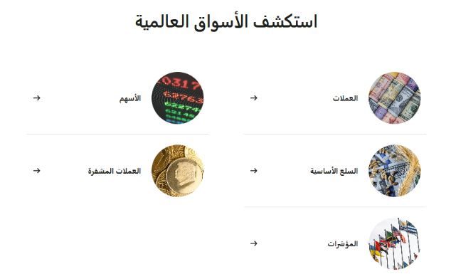 تمنح عقود الفروقات على الأسهم المتداولين التعرض لأسهم الشركات الدولية المعروفة دون شراء الأسهم الفعلية. تتتبع عقود الفروقات على المؤشرات المؤشرات العالمية الرئيسية، مما يسمح للمتداولين بمتابعة تحركات السوق الأوسع. تشمل عقود الفروقات على السلع منتجات الطاقة مثل النفط الخام والمعادن الثمينة، مما يوفر فرص تنويع لأولئك الذين يبنون محافظ متنوعة.