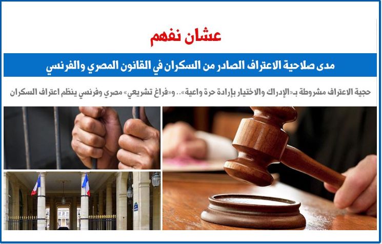 عشان نفهم.. مدي صلاحية الاعتراف الصادر من السكران في القانون المصري والفرنسي.. حجية الاعتراف مشروطة بركنين أساسيين هما الإدراك والاختيار بإرادة حرة واعية.. و"فراغ تشريعى" مصري وفرنسى يَنظُم اعتراف السكران