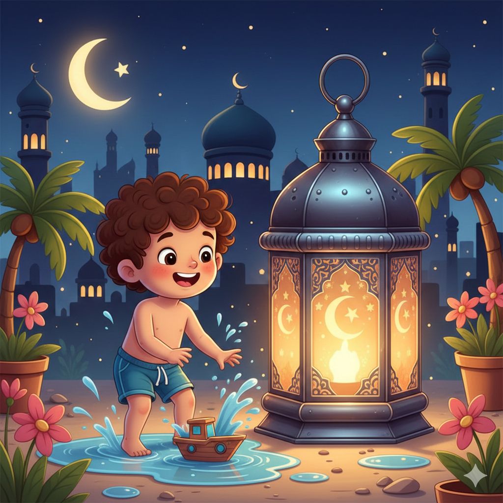 في حي صغير تغطيه ألوان المساء الذهبية مع نسيم شهر رمضان العليل، كان الطفل سليم يجلس على أريكته بالقرب من نافذة غرفته، ممسكاً بفانوسه الصغير الذي اشترته له والدته قبل أيام من حلول الشهر الفضيل. كان الفانوس مصنوعاً من الزجاج الملون والخشب الخفيف، ويصدر ضوءاً دافئاً حين تُشعل فيه شمعة صغيرة، لكنه لم يكن مجرد لعبة بالنسبة لسليم؛ بل كان رمزاً لما يعنيه شهر رمضان بالنسبة له: فرح العائلة، صوت الأذان، رائحة الطعام، وروح المشاركة التي تملأ الحي.