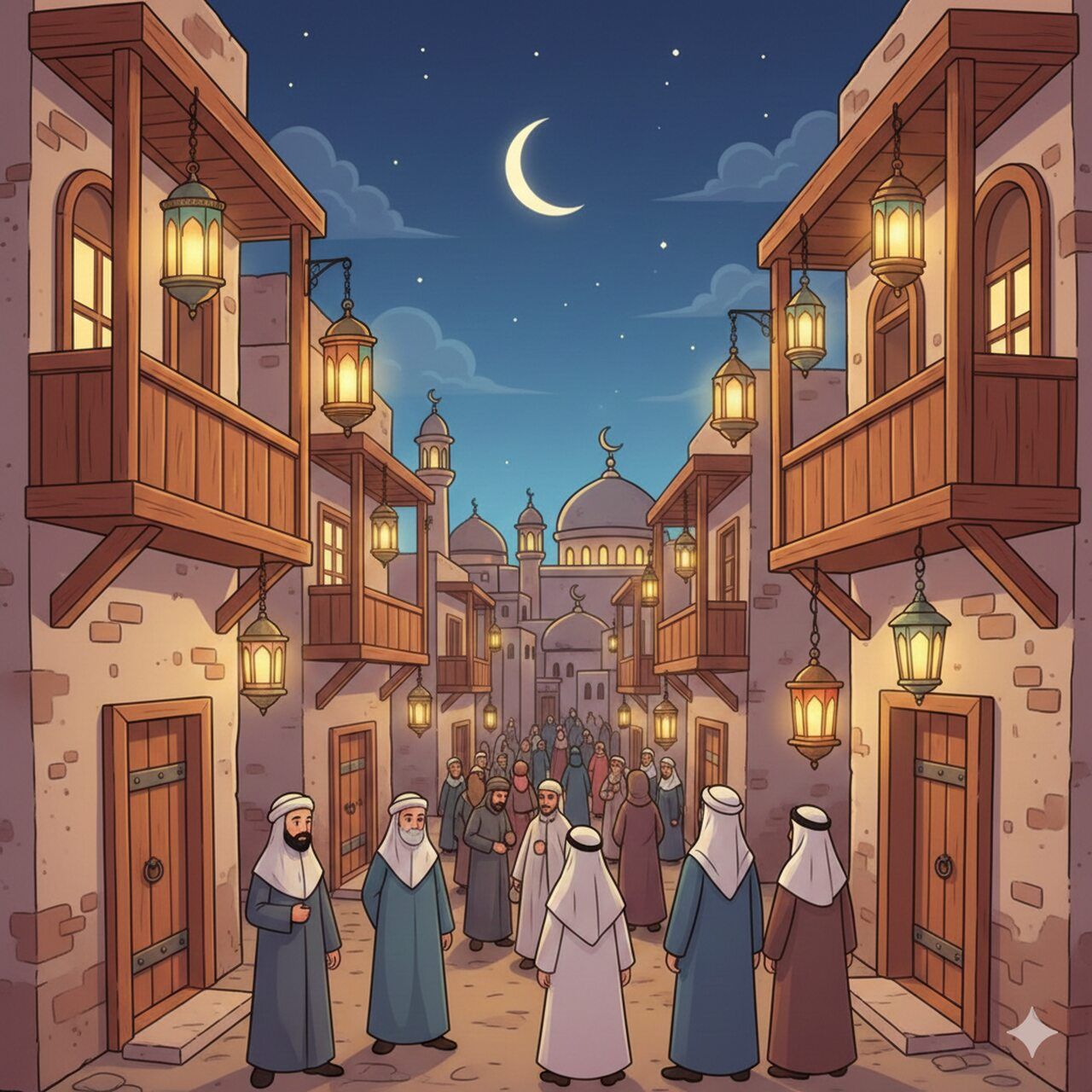 بعد أيام قليلة، قررت أم سليم أن يأخذ سليم الأطفال في جولة صغيرة في الحي لإضاءة الفوانيس الصغيرة على الشرفات والنوافذ، حتى يشعر الجميع ببهجة شهر رمضان. حمل سليم فانوسه الصغير وهو يتقدم جنباً إلى جنب مع أصدقائه، وبدأوا يضعون الفوانيس في أماكن مرتفعة قليلاً على الشرفات، بينما كانت الشموع تلمع بضوء دافئ.
