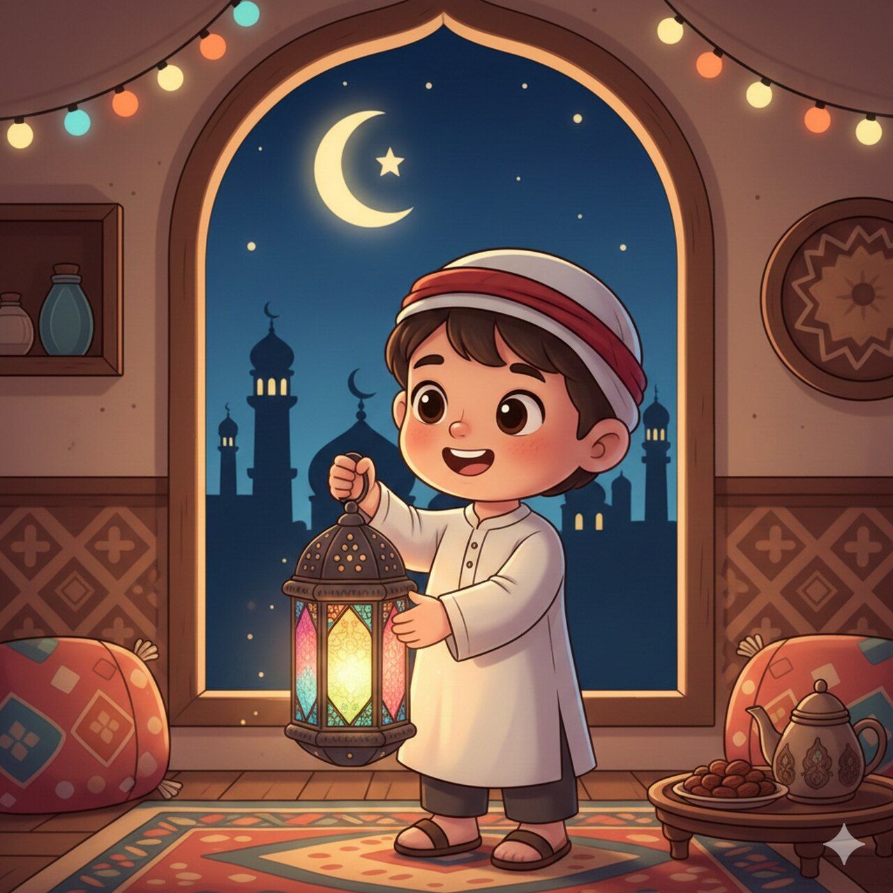 سليم كان في الثامنة من عمره، وفضولياً بطبعه، يحب أن يعرف كل شيء عن الأشياء التي يراها، ولكن هذه السنة، مع اقتراب شهر رمضان، شعر بشيء جديد في قلبه: مسؤولية تجاه فانوسه. فقد أخبرته والدته بابتسامة: "سليم، الفانوس ليس للعرض فقط، بل ليذكرك بأن شهر رمضان شهر القلب الطيب والصدق والاهتمام بالآخرين."