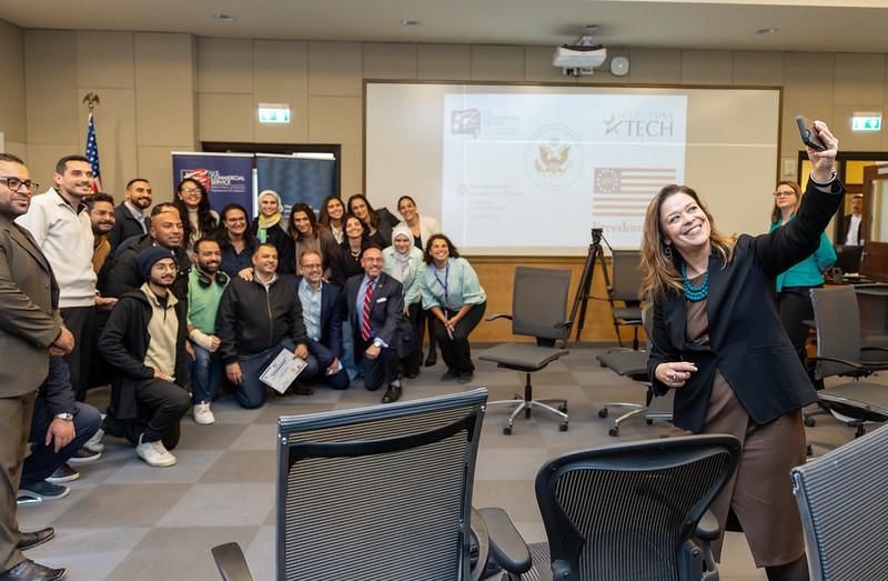 الخميس، 12 فبراير 2026 01:53 منظمت سفارة الولايات المتحدة بالقاهرة، المسابقة السنوية لعرض المشروعات التكنولوجية الناشئة ضمن مبادرة SelectUSA Tech، حيث شارك 16 من رواد الأعمال المصريين فى مجال التكنولوجيا الناشئة بعرض أفكارهم أمام لجنة من الخبراء للتنافس على فرصة السفر إلى الولايات المتحدة والمشاركة فى قمة SelectUSA للاستثمار.