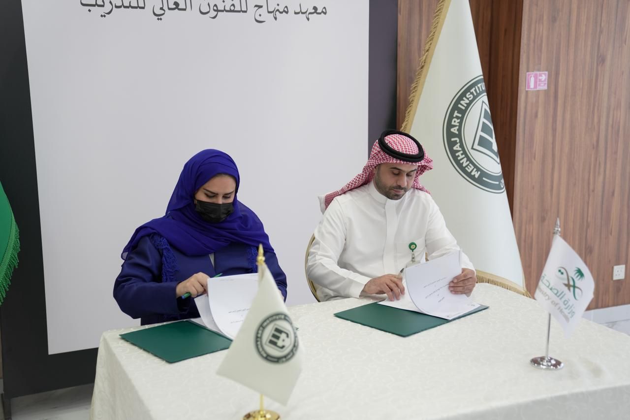 ومثل وزارة الصحة في توقيع الاتفاقية إبراهيم عسيري، نائب مدير مركز الابتكار بوزارة الصحة، بينما مثل المعهد هيفاء بنت منصور الجبيله، المدير العام لمعهد منهاج للفنون العالي للتدريب.