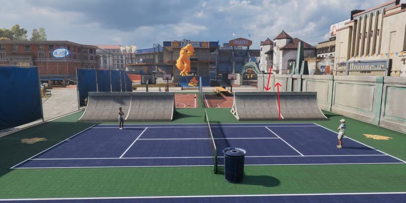 ابدأ من نقطة الظهور (Spawn) ثم اتجه مباشرة إلى الجهة اليسرى حتى تصل إلى ملعب التنس. بعد دخولك ملعب التنس، توجّه نحو المنحدر الموجود بداخله واستمر في التزلج باتجاهه. اصعد باللوح على المنحدر بشكل طبيعي، وعندما تقترب من أعلى نقطة في المنحدر وقبل أن تفقد السرعة، قم بتنفيذ حركة Boneless Ollie.