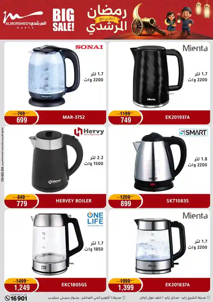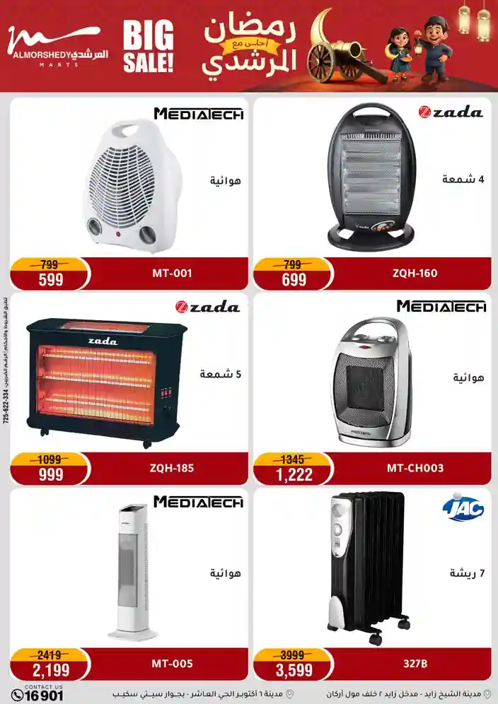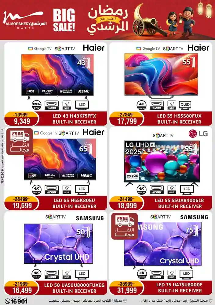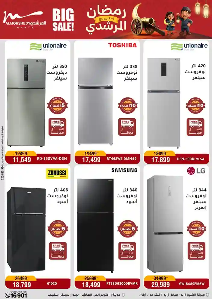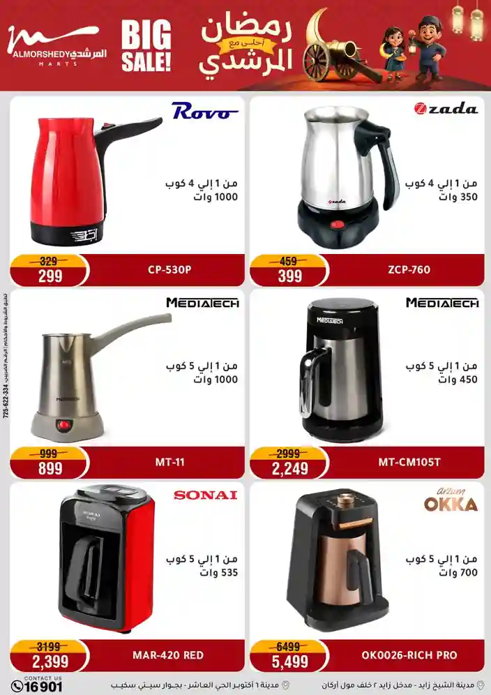 عروض جديدة من أسواق المرشدي  مع اكبر مهرجان للتخفيضات في مصر خصومات حتى 70%  وقسط براحتك بدون فوائد بأسعار العروض المخفضة على 12 شهر لحاملي بطاقة ائتمان CIB أو براحتك مع VALU بدون مقدم حتى 60 شهر أو بدون مقدم وبدون فوائد مع نظام هاتريك وكمان النقل مجاني للقاهرة والجيزة والقليوبية على قسم الأجهزة الكهربائية والموبيليا والمراتب ( تطبق شروط المكان ) خصومات على جميع الأقسام أدوات منزلية – اجهزة كهربائية – مفروشات – موبيليا – نجف – سجاد – مراتب – ملابس رجالي وحريمي وأطفالي ومستلزمات ولعب الأطفال وجاليري وأقسام تانية كتير استمتع بالتسوق في أسواق المرشدي مع أكتر من 12 قسم و أكثر من 10,000 منتج يعني كل اللي بتحلم بيه عند المرشدي هتلاقيه