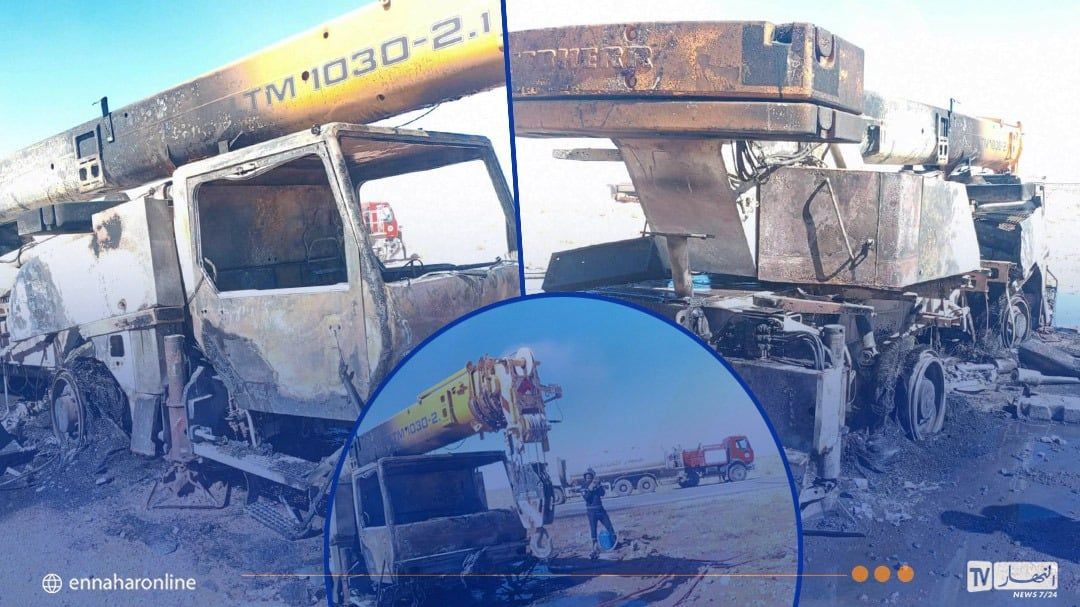اندلع حريق، مساء اليوم، على مستوى آلة رافعة تابعة لشركة خاصة بالبناء والأشغال العـامة، بمنطقة واد عائشة بإقليم العبادلة، في بشـار.