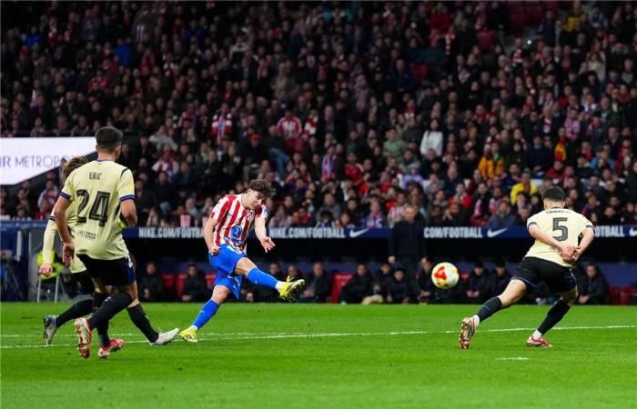 وتمكن أتلتيكو مدريد من تسجيل الهدف الرابع في شباك خصمه برشلونة، في اللحظات الأخيرة من الشوط الأول، وتحديدًا في الدقيقة الثانية من الوقت المحتسب بدلًا من الضائع.