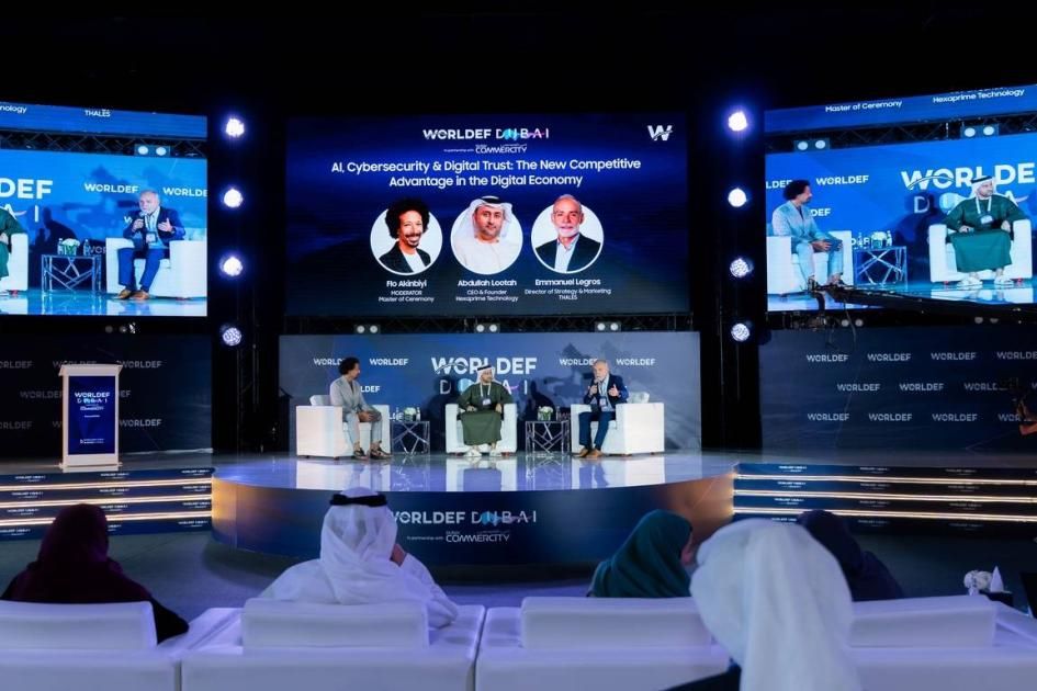وناقشت جلسة بعنوان «الذكاء الاصطناعي والأمن السيبراني والثقة الرقمية: الميزة التنافسية الجديدة في الاقتصاد الرقمي» أهمية بناء منظومات حماية متقدمة وتعزيز الثقة بالمعاملات الرقمية، حيث أكد عبدالله لوتاه، المؤسس الشريك والرئيس التنفيذي لشركة (HexaPrime Technologies)، وإيمانويل لاغوس، مدير الاستراتيجية في شركة (Thales)، أن الأمن السيبراني أصبح ركناً أساسياً في تنافسية الشركات الرقمية.