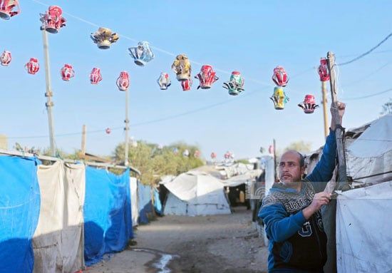 وسط الخيام تعليق زينة رمضان فى خان يونس