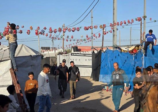ونقلت وكالة الأنباء الفلسطينية «وفا» تقريرًا يرصد مشاهد استعداد النازحين لرمضان، حيث انشغل الأطفال والكبار معًا بتزيين الخيام وصناعة المصابيح من العلب الفارغة، محولين بقايا القمامة إلى مصدر نور وسعادة، يؤكد أن إرادة الحياة أقوى من الدمار.