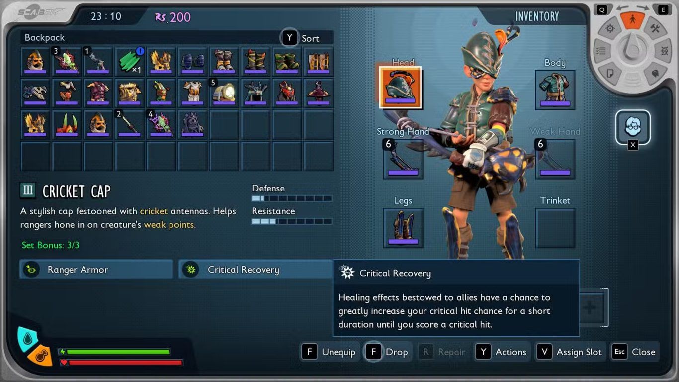 تعد مجموعة Cricket واحدة من أقوى مجموعات الدروع المخصصة لأسلوب Marksman داخل لعبة Grounded 2 حيث تجمع بين مستوى حماية جيد ومقاومة مناسبة مع تصميم بصري مميز يجعلها من أكثر المجموعات لفتا للانتباه داخل Garden Biome.