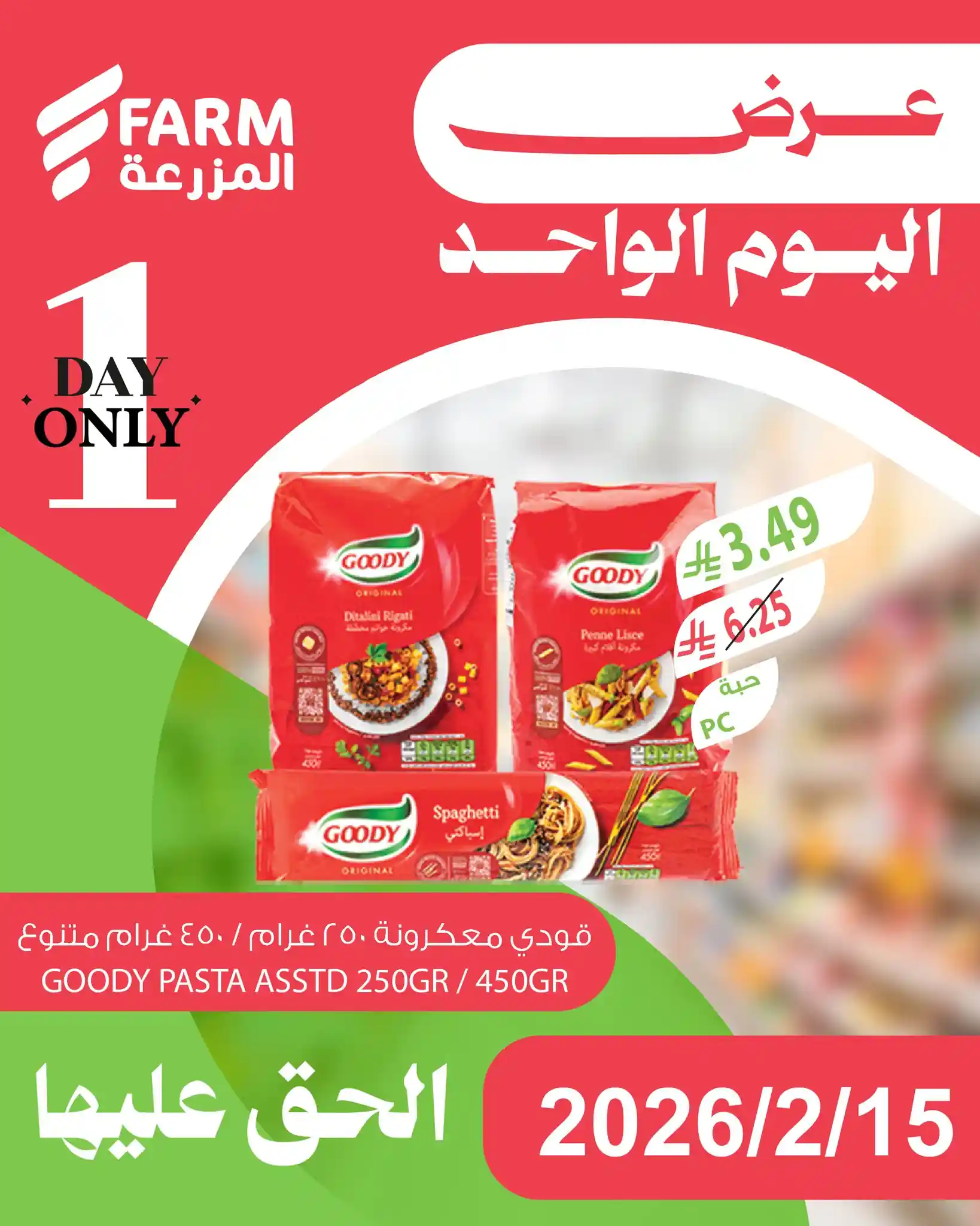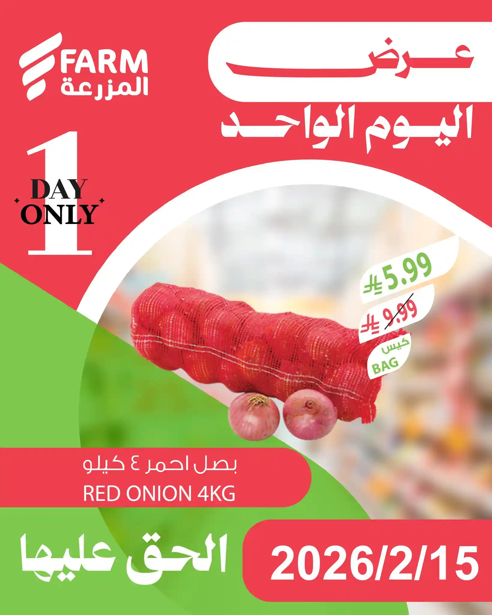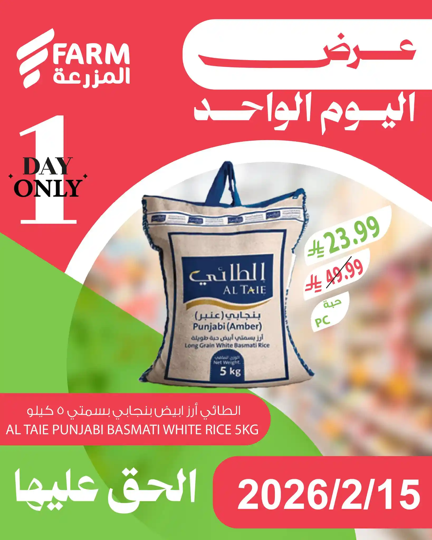 عروض المزرعة الرياض اليوم الاحد 15 فبراير 2026 عروض اليوم الواحد