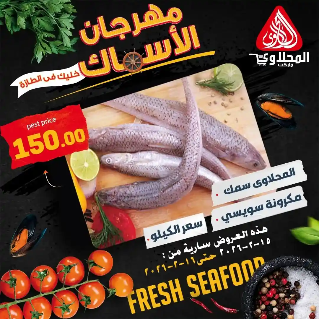 عروض المحلاوى الجديدة سارية من 15 فبراير حتى 16 فبراير 2026 عروض الاسماك او حتى نفاذ الكمية