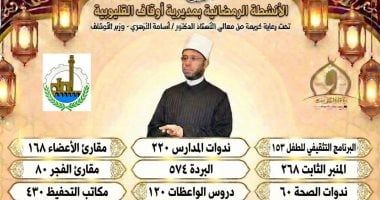 الأحد، 15 فبراير 2026 05:16 مأعلنت مديرية أوقاف القليوبية بقيادة فضيلة الشيخ عبد الرحمن رضوان، مدير المديرية، عن إنطلاق البرنامج التثقيفي والدعوي الشامل لشهر رمضان لعام 1447هـ، ليشمل كافة مراكز ومدن المحافظة، تحت رعاية الدكتور أسامة الأزهري، وزير الأوقاف، وفي إطار دور الوزارة الريادي في عمارة بيوت الله ونشر الفكر الوسطي المستنير.