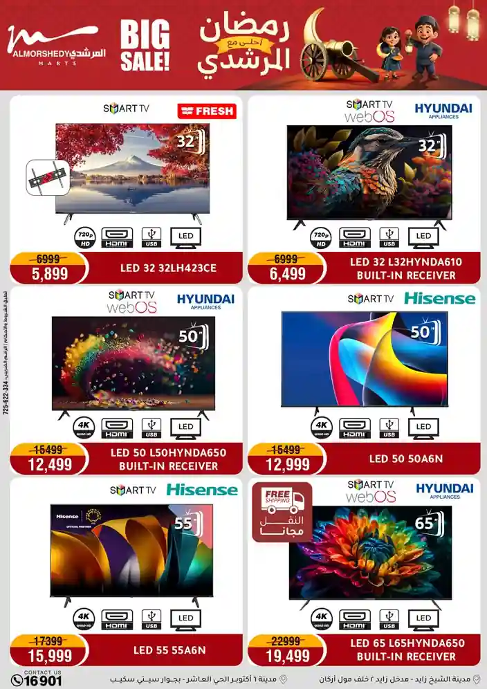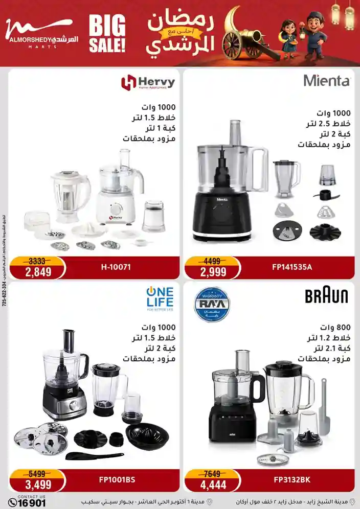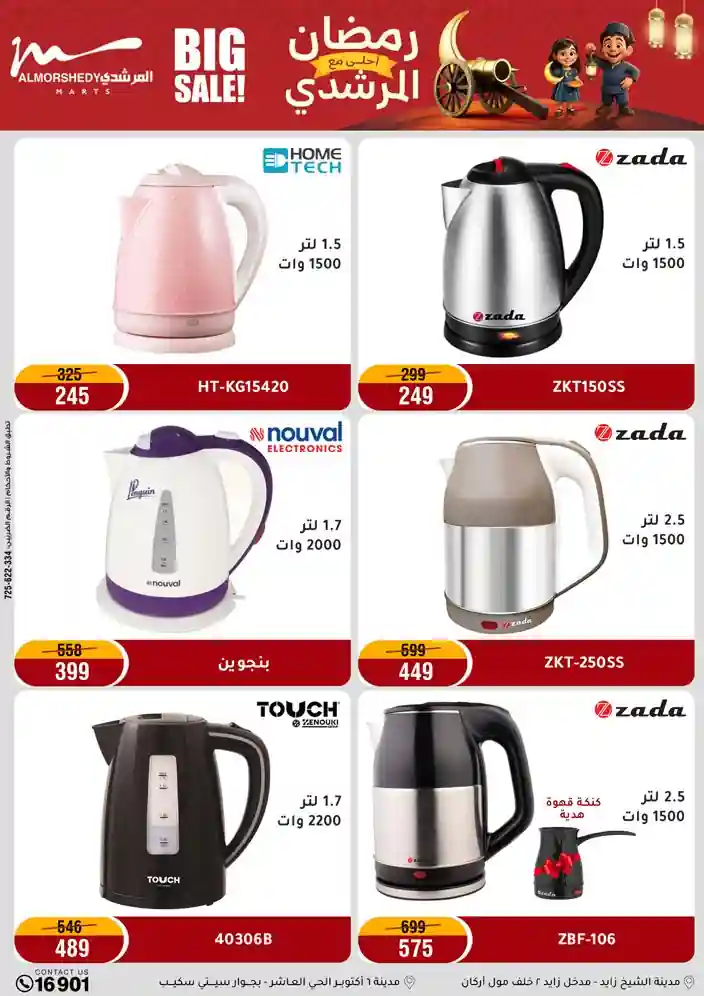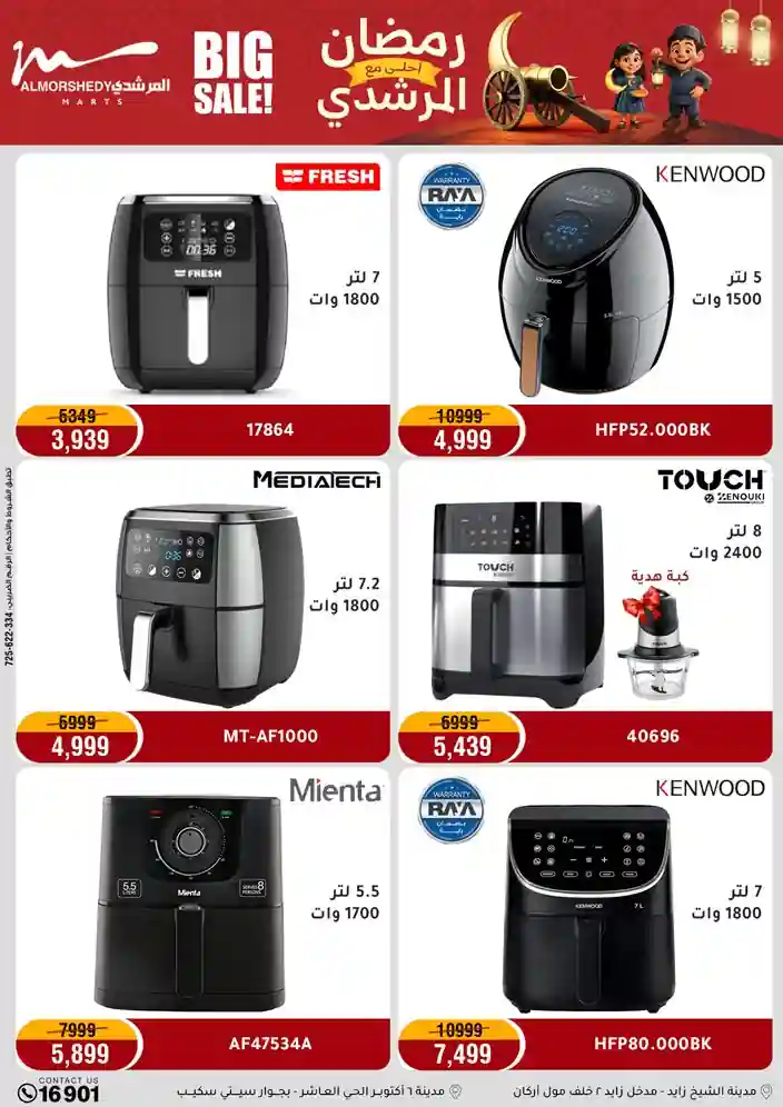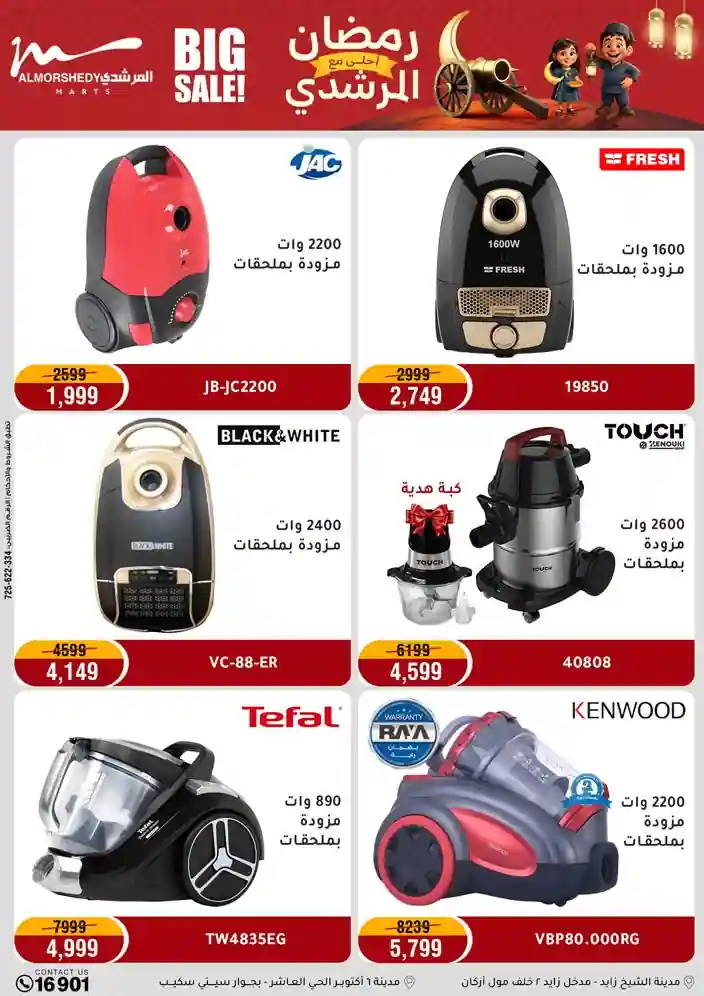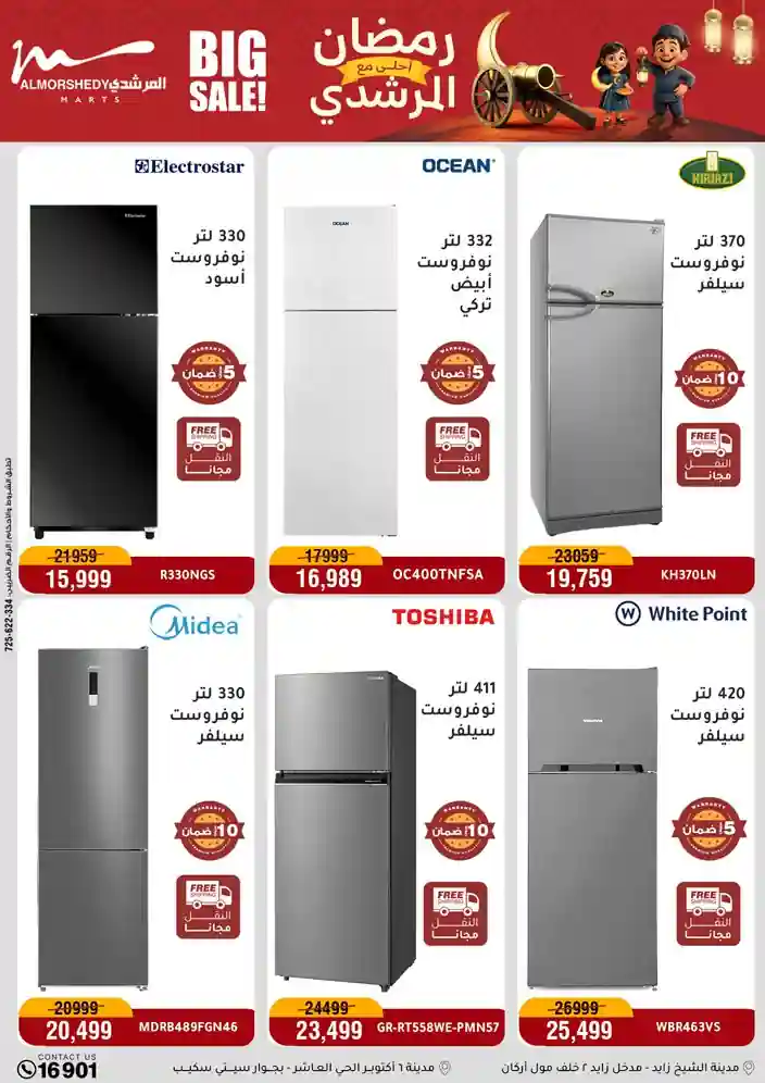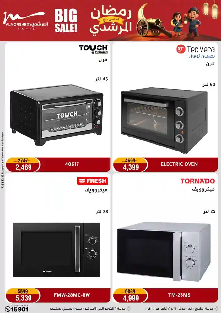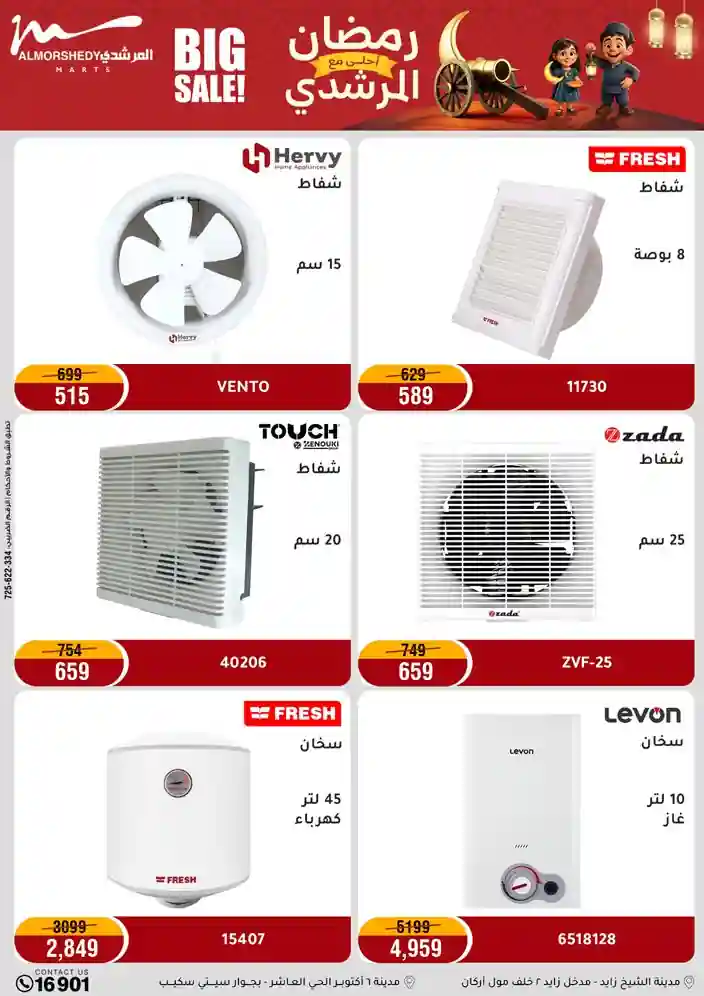 عروض جديدة من أسواق المرشدي مع اكبر مهرجان للتخفيضات في مصر خصومات حتى 70% وقسط براحتك بدون فوائد بأسعار العروض المخفضة على 12 شهر لحاملي بطاقة ائتمان CIB أو قسط براحتك مع VALU بدون مقدم حتى 60 شهر أو بدون مقدم وبدون فوائد مع نظام هاتريك وكمان النقل مجاني للقاهرة والجيزة والقليوبية على قسم الأجهزة الكهربائية والموبيليا والمراتب ( تطبق شروط المكان ) خصومات على جميع الأقسام أدوات منزلية – اجهزة كهربائية – مفروشات – موبيليا – نجف – سجاد – مراتب – ملابس رجالي وحريمي وأطفالي ومستلزمات ولعب الأطفال وجاليري وأقسام تانية كتير استمتع بالتسوق في أسواق المرشدي مع أكتر من 12 قسم و أكثر من 10,000 منتج يعني كل اللي بتحلم بيه عند المرشدي هتلاقيه
