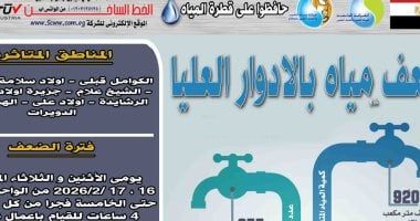 الأحد، 15 فبراير 2026 07:16 مأعلنت شركة مياه الشرب والصرف الصحى بسوهاج عن ضعف المياه بالأدوار العليا بقرى الكوامل قبلى واولاد سلامة وهارون والشيخ علام وجزيرة أولاد حمزة والرشايدة والشهداء واولاد على والهماصى والدويرات بمركز المنشاه يومى الأثنين و يوم الثلاثاء فى تمام الواحدة صباحا وحتى الخامسة فجرا ولمدة 4 ساعات بكل يوم، صرح بذلك المهندس محمد صلاح الدين عبد الغفار رئيس مجلس الإدارة والعضو المنتدب وأضاف أنه انه يتم خلال تلك الفترة القيام بأعمال غسيل مروق 1,2 بمحطة مياه المنشاة السطحية.