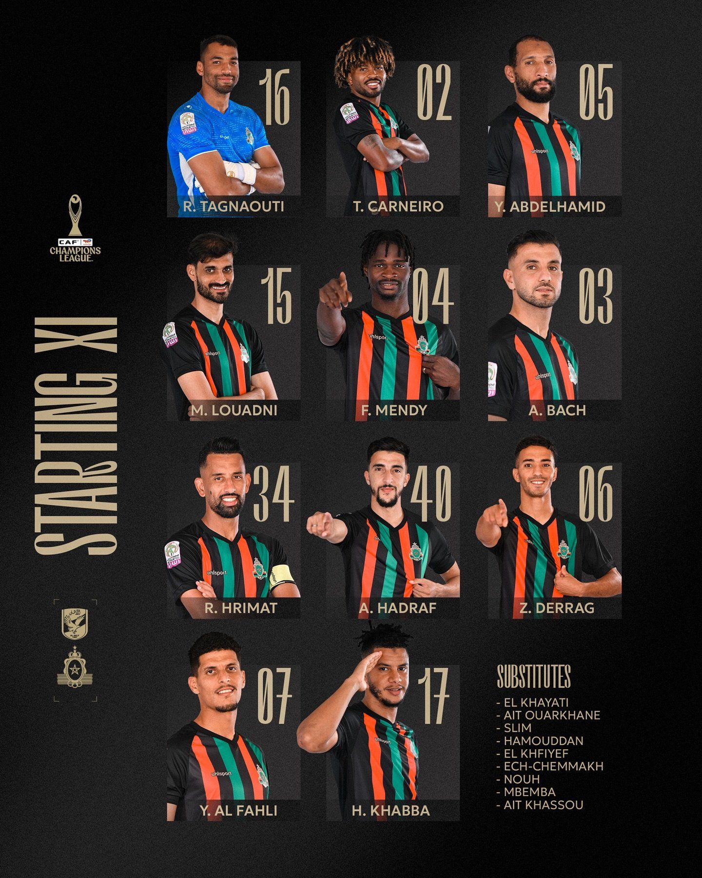 ـ خط الدفاع: تو كارنيرو – فالو ميندي – يونس عبد الحميد – أنس باش.