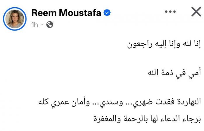 وكتبت «ريم»، عبر حسابها على موقع التواصل الاجتماعي «فيس بوك»: «إنا لله وإنا إليه راجعون.. أمي في ذمة الله.. النهاردة فقدت ضهري.. وسندي.. وأمان عمري كله.. برجاء الدعاء لها بالرحمة والمغفرة».