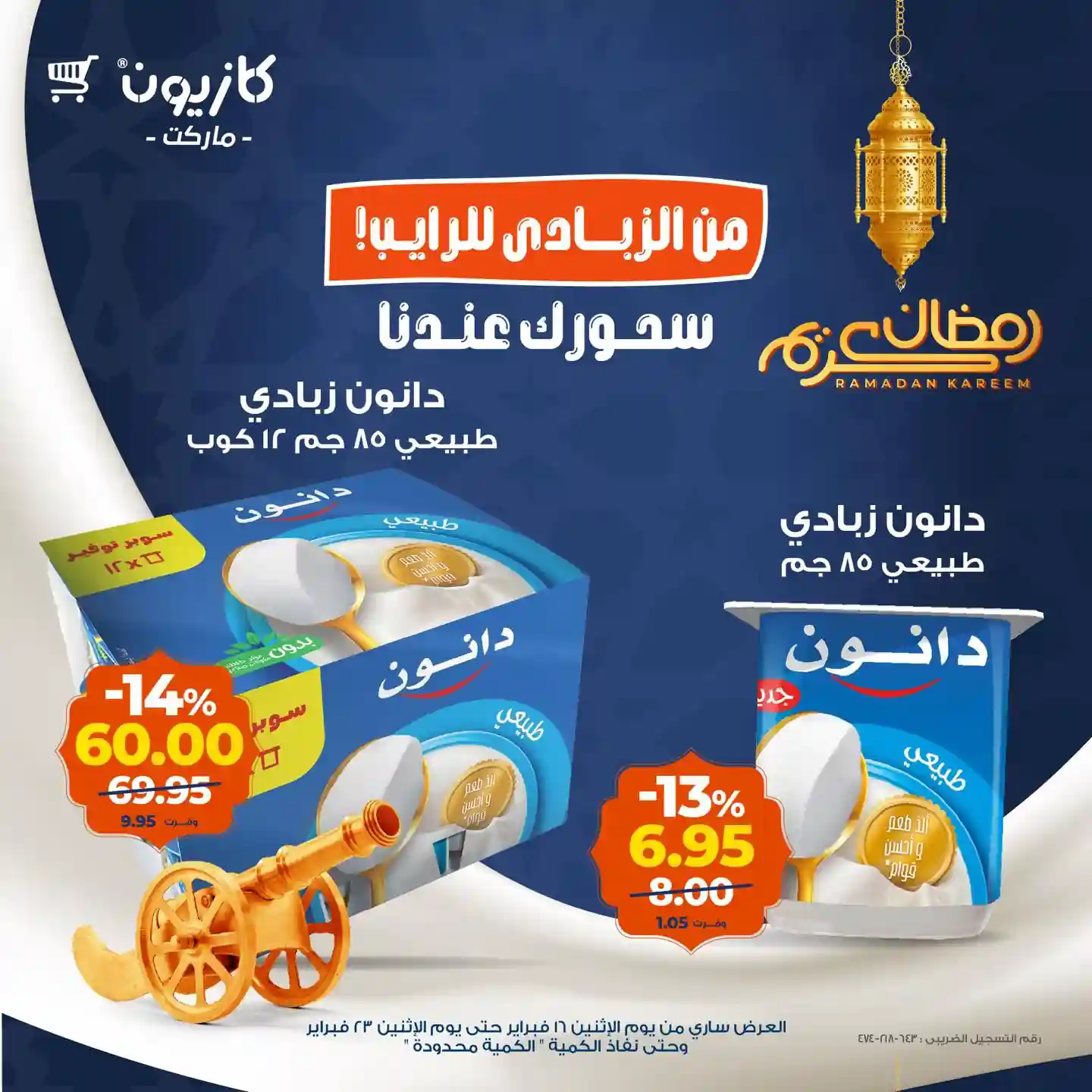 العروض الجديدة من كازيون تسرى من 16 فبراير حتى 23 فبراير 2026 سحورك عندنا فى جميع فروع كازيون