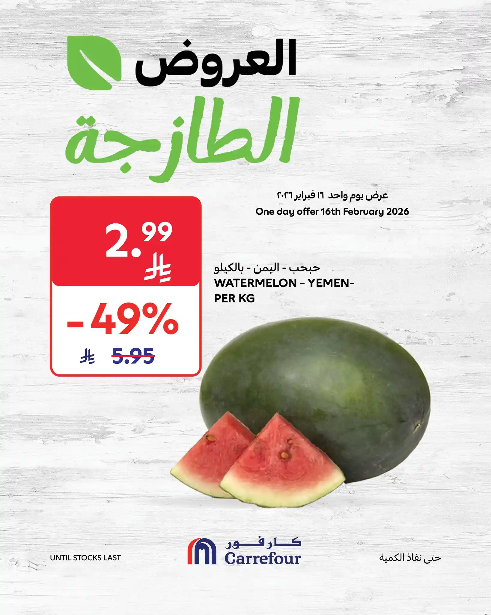 عروض نت تقدم لكم احدث عروض كارفور السعودية اليوم الجديدة فى صفحة واحدة – عروض كارفور السعودية 2026 – و ذلك من الاثنين 16 فبراير 2026 العروض الطازجة او حتى نفاذ الكمية من كارفور السعودية بجميع الفروع.