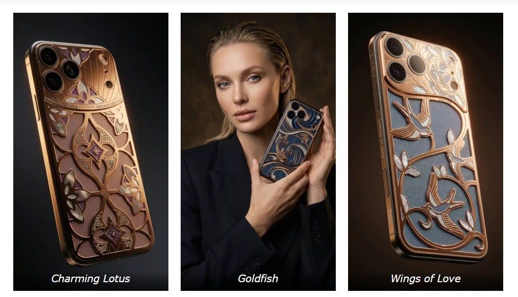 تشمل مجموعة "حديقة عدن" تصاميم "اللوتس الساحر" و"السمكة الذهبية" و"أجنحة الحب"، وتستخدم كافيار في هذه التصاميم الذهب عيار 24 قيراطًا، والمينا، والنقش، والماس، والياقوت، وتتوفر هذه التصاميم لكل من آيفون 17 برو وآيفون 17 برو ماكس، بما في ذلك إصدارات بسعة تخزين تصل إلى 2 تيرابايت.