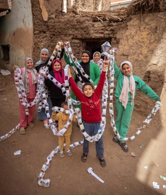تتصدر عناقيد الزينة والفوانيس الملونة المصنوعة من أوراق الكتب والكراريس القديمة، شوارع وأزقة العديد من القرى والأحياء الشعبية البسيطة في مصر، في طقس سنوي للاحتفال بالشهر الفضيل، لم يتبدل على مر الزمن.