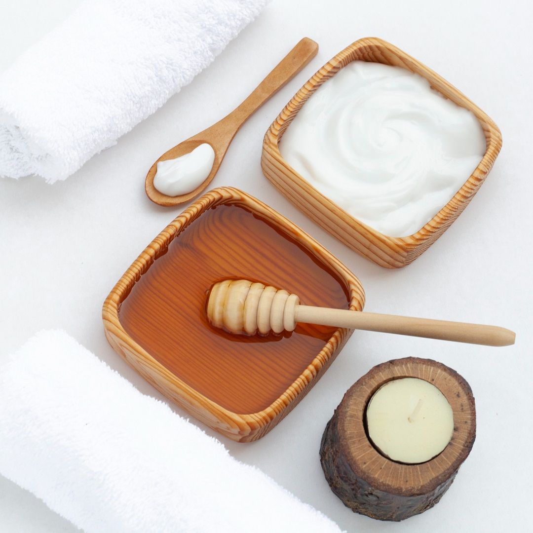 - زبادي + ملعقة عسل + ملعقة زيت زيتون