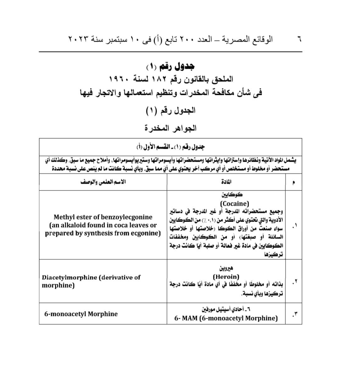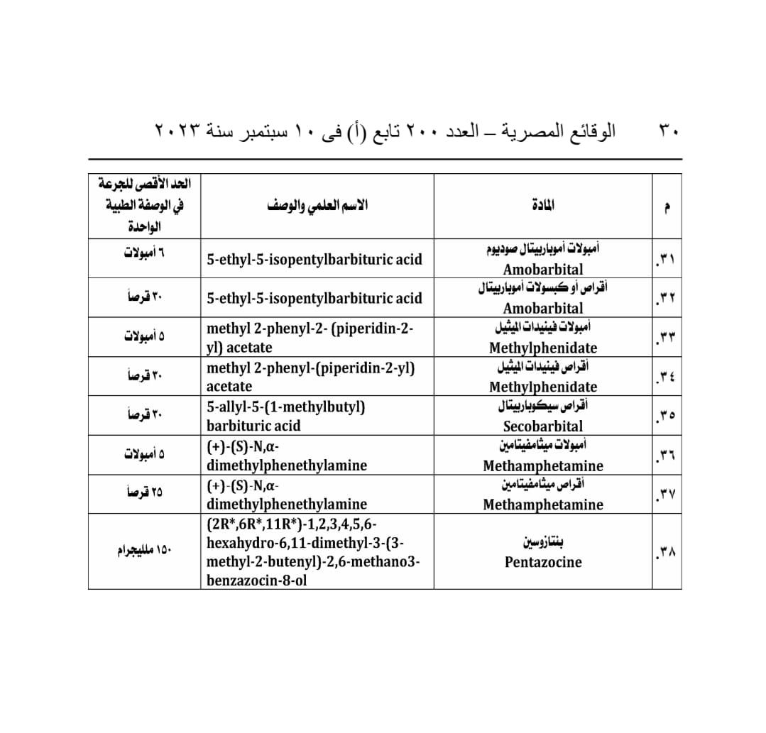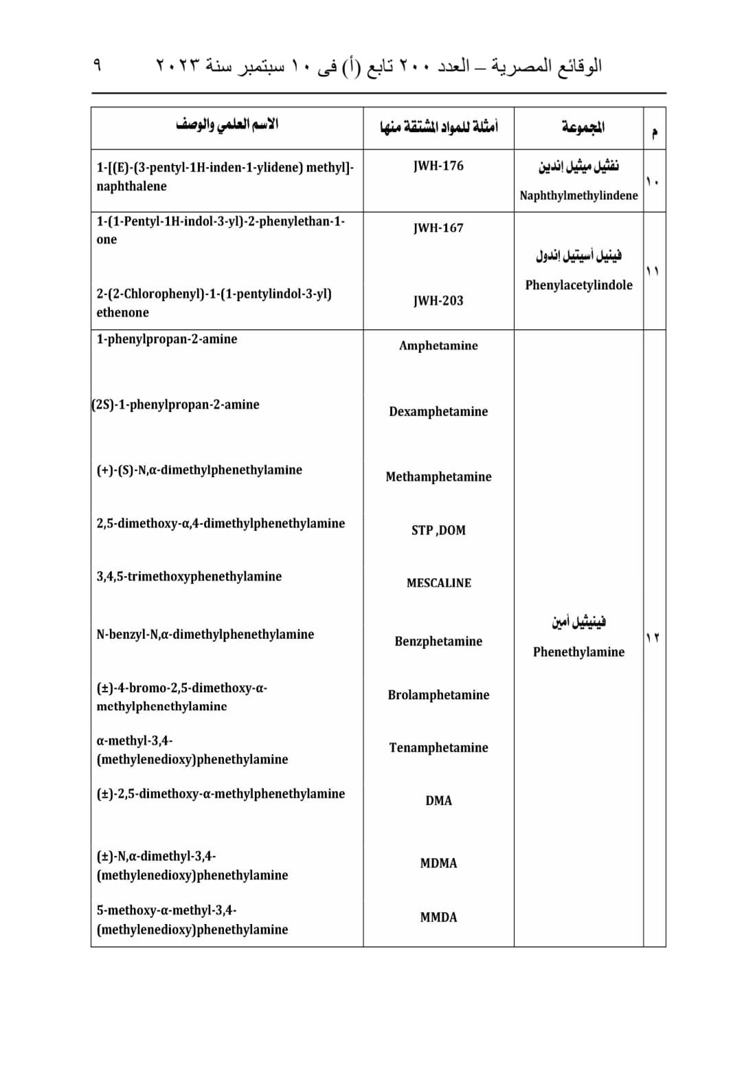 صدر من رئيس هيئة الدواء المصرية بعد توصيات اللجان المشكلة فى سبتمبر 2023 متضمنا إعادة تصنيف وتعديل جدول المخدرات، بما في ذلك إضافة مواد جديدة أو نقل مواد بين الأقسام المختلفة للجداول لضبط تداولها والذى ترتب عليه تجريم ومعاقبة من يضبط بحوزته هذه المواد المدرجة والتى من بينها المواد المخدرة المخلقة كالشابو والآيس.