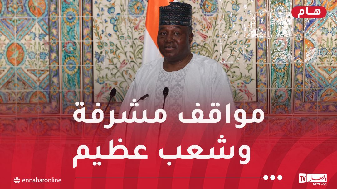 وقال الرئيس النيجري، إن موقف الجزائر الداعم لاحترام سيادة النيجر وخياراتها السياسية الداخلية موقف مشرف لحكومتكم وللشعب الجزائري العظيم.