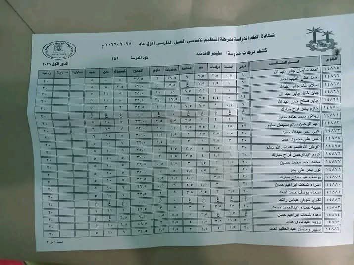 أثارت نتيجة الفصل الدراسي الأول للشهادة الإعدادية للعام الدراسي 2025- 2026 في مدرسة مخيمر الإعدادية التابعة لإدارة كوم أمبو التعليمية بمحافظة أسوان موجة كبيرة من الجدل، بعد أن كشفت النتائج عن نجاح طالب واحد فقط من بين جميع الطلاب تقريبًا، في واقعة غير مسبوقة أثارت تساؤلات أولياء الأمور والمتابعين للعملية التعليمية.