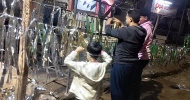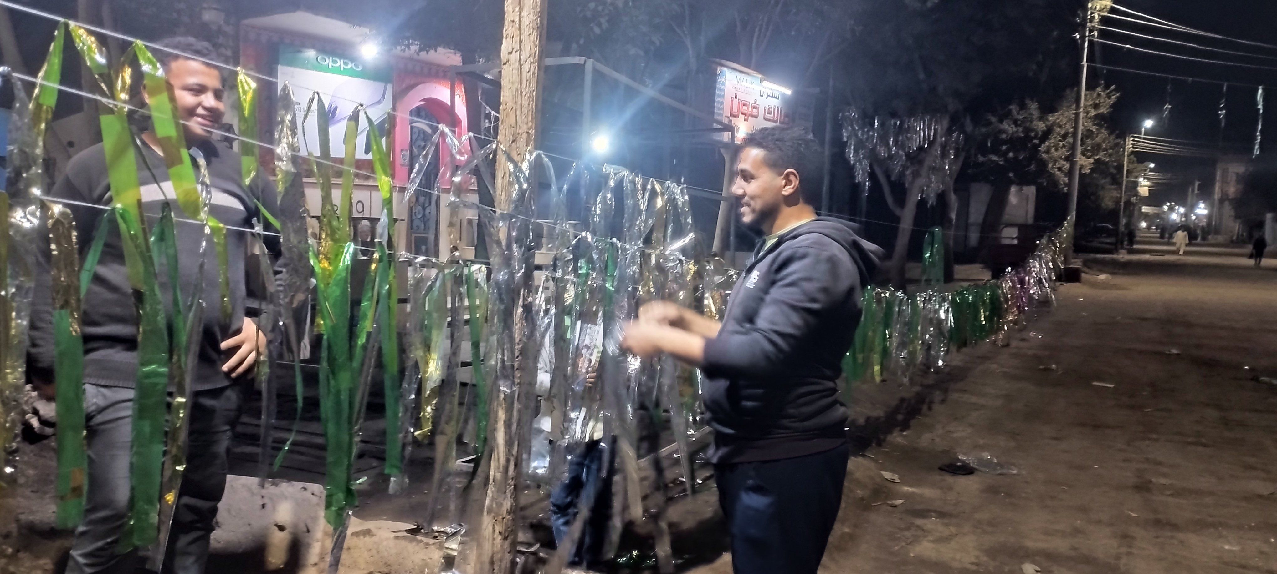 شباب القرى بالمنيا يصنعون الزينة فى الشوارع (1)