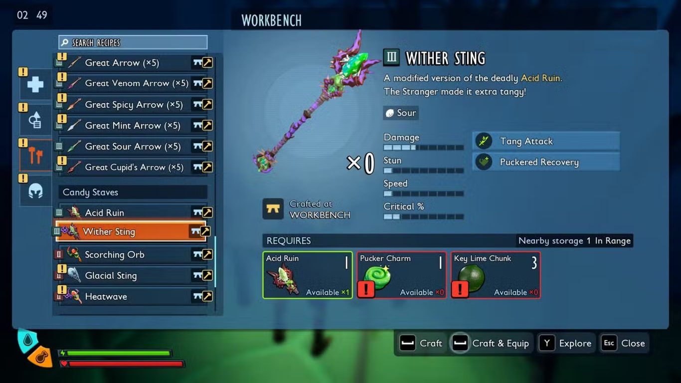 يعد سلاح Wither Sting نسخة معدلة ومتقدمة من عصا Acid Ruin داخل لعبة Grounded 2 حيث تم تصميمه ليعزز أسلوب اللعب القائم على إضعاف الأعداء والتحكم في مجريات القتال بدلا من الاعتماد على الضرر المباشر فقط مما يجعله خيارا تكتيكيا مميزا ضمن فئة Mage Staff.