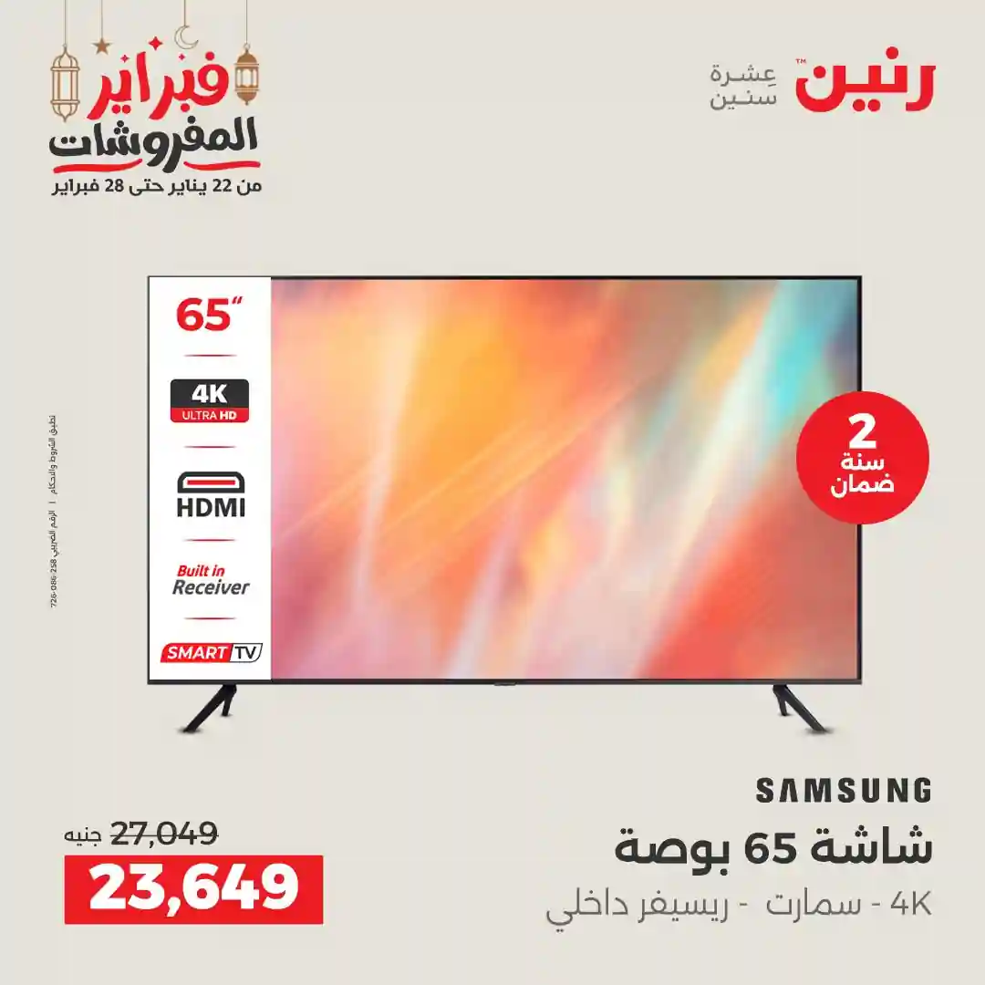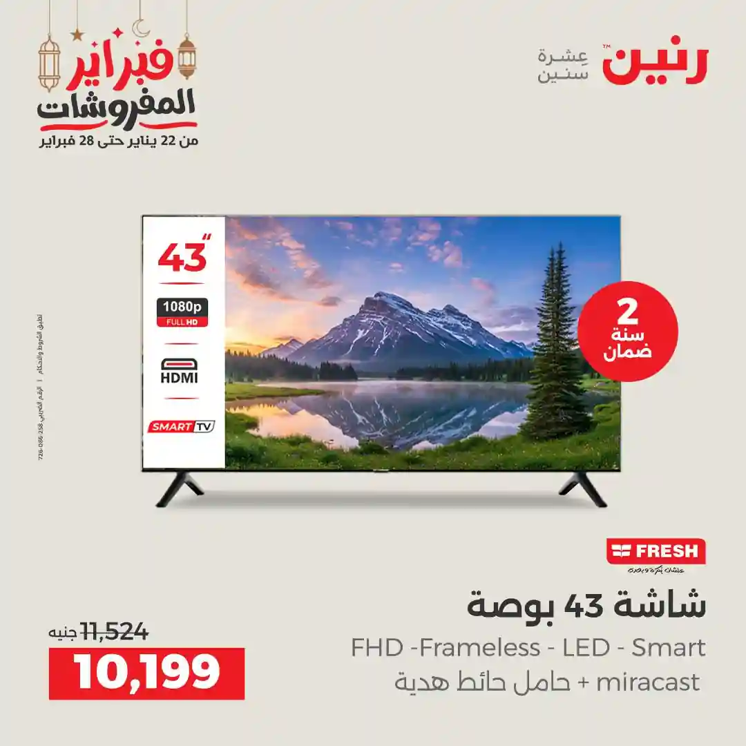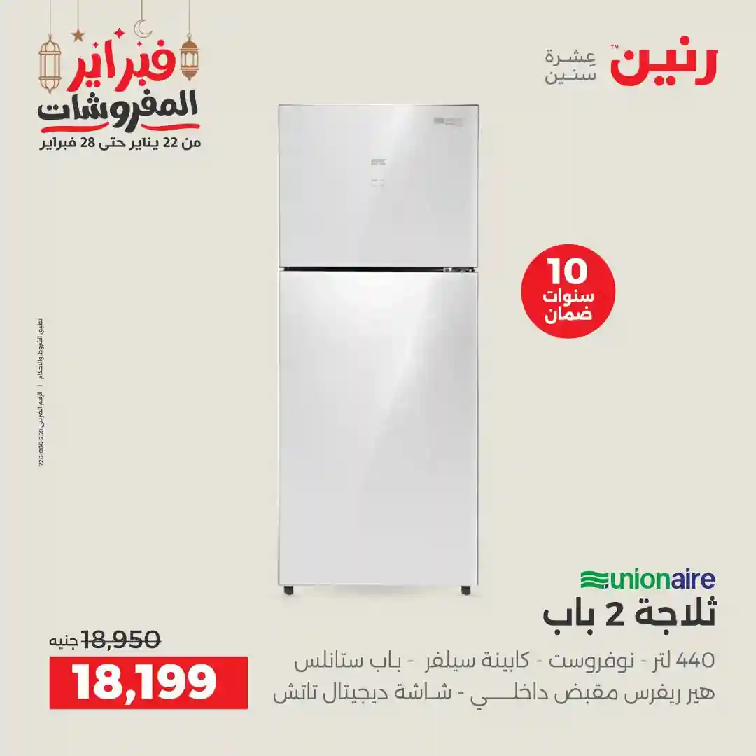 تسرى عروض رنين من يوم الخميس للسبت 19 – 20 – 21 فبراير 2026 للاجهزة الكهربائية بجميع الفروع