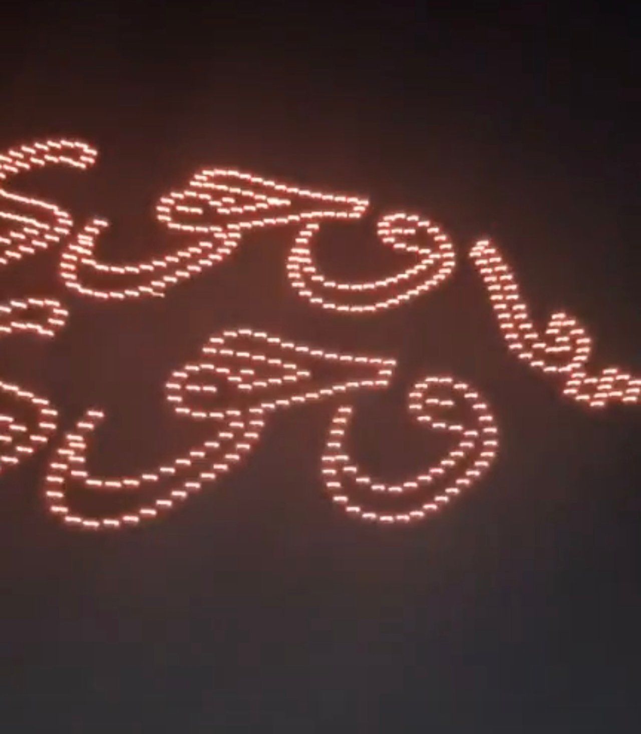 كما رسمت طائرات الدرون، أسماء الله الحسنى وعبارات "رمضان كريم" و"وحوي يا وحوي" فى مشهد أبهر الحاضرين، وشاهد الجميع صورة "المسحراتي" بطبله الشهير، و"بتاع الكنافة" ، بالإضافة إلى رسم زينة رمضان، وهي تتشكل بدقة متناهية من الأضواء في قلب السماء.