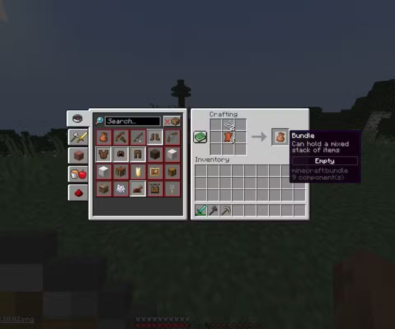 تتم ابسط عمليات Crafting مباشرة داخل واجهة اللاعب باستخدام شبكة صغيرة مخصصة للتصنيع حيث يمكن من خلالها انتاج عناصر اساسية مثل الالواح الخشبية والعصي وطاولة Crafting.