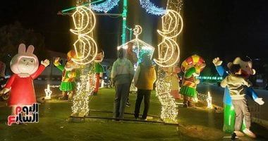 الأهالى يلتقطون الصور التذكارية مع زينة رمضان