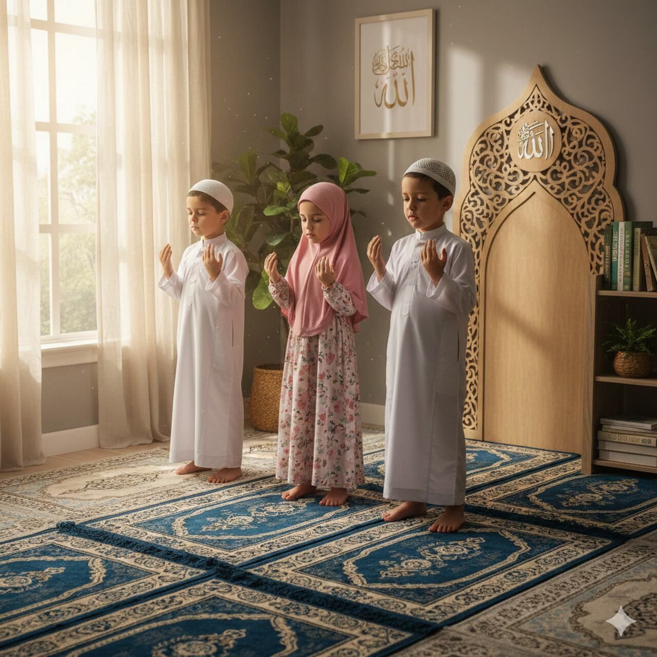 يُعد ركن الصلاة في المنزل أداة تربوية فعّالة لترسيخ محبة الصلاة لدى الأطفال، حيث يوفر مساحة آمنة ومحفزة تجعل العبادة جزءاً ممتعاً من روتينهم اليومي. يساعد هذا الركن في تعزيز الانضباط، وتعلم المسؤولية، وتحقيق الهدوء النفسي والتركيز عند الأطفال، مما يغرس القيم الأخلاقية والإيمانية في شخصية الطفل منذ الصغر. ويتيح فرصةً للتواصل مع الجانب الروحي لشهر رمضان. بإمكانهم تزيين سجادات الصلاة الصغيرة أو تصميم مسبحاتهم الخاصة لاستخدامها أثناء الصلاة.