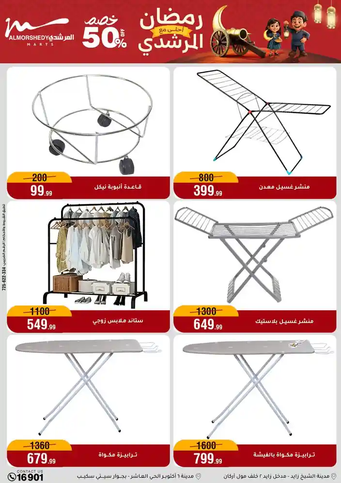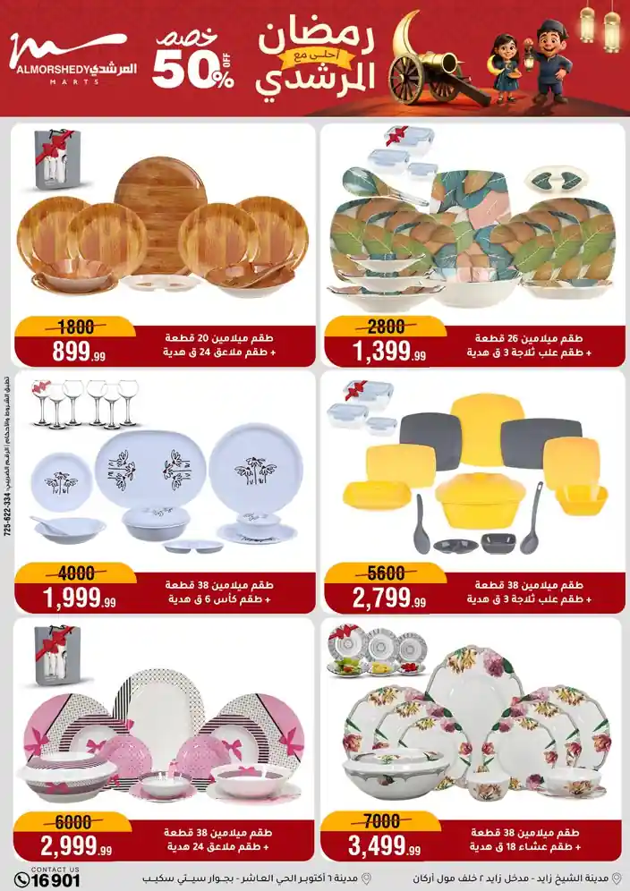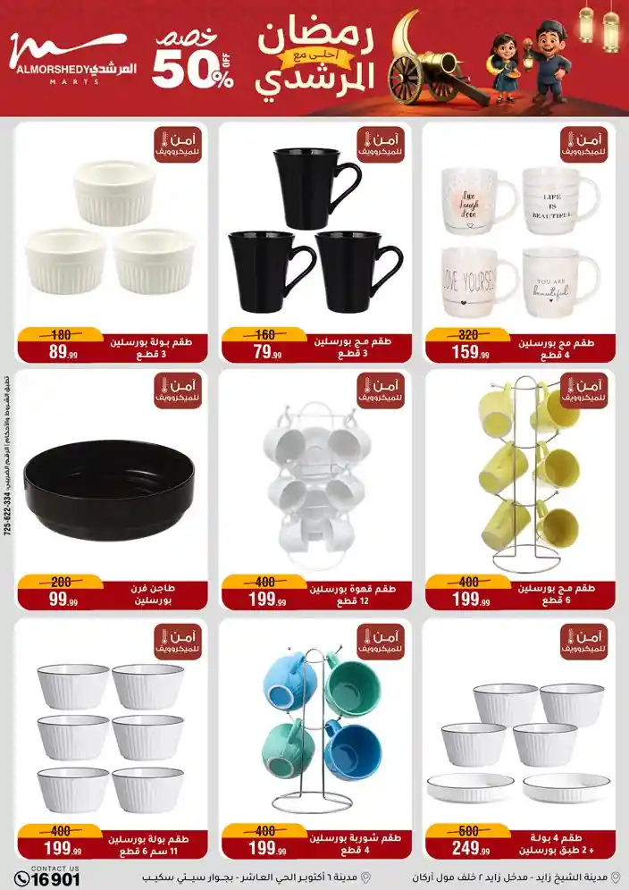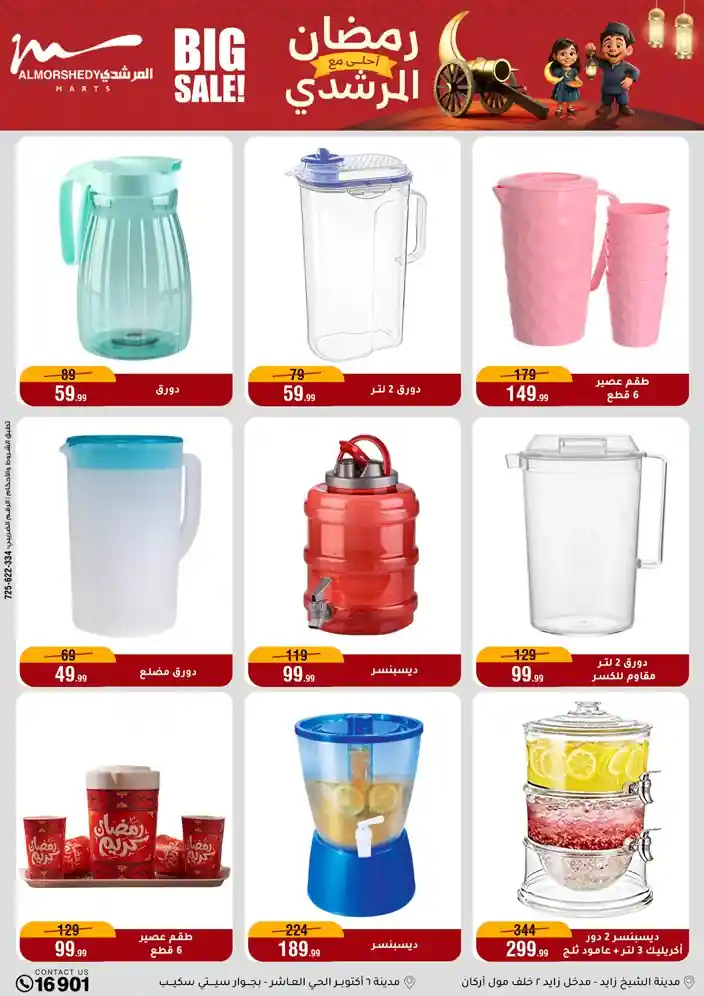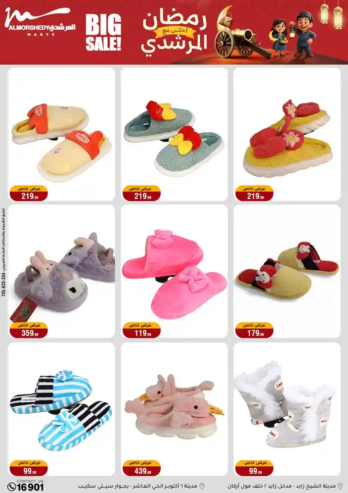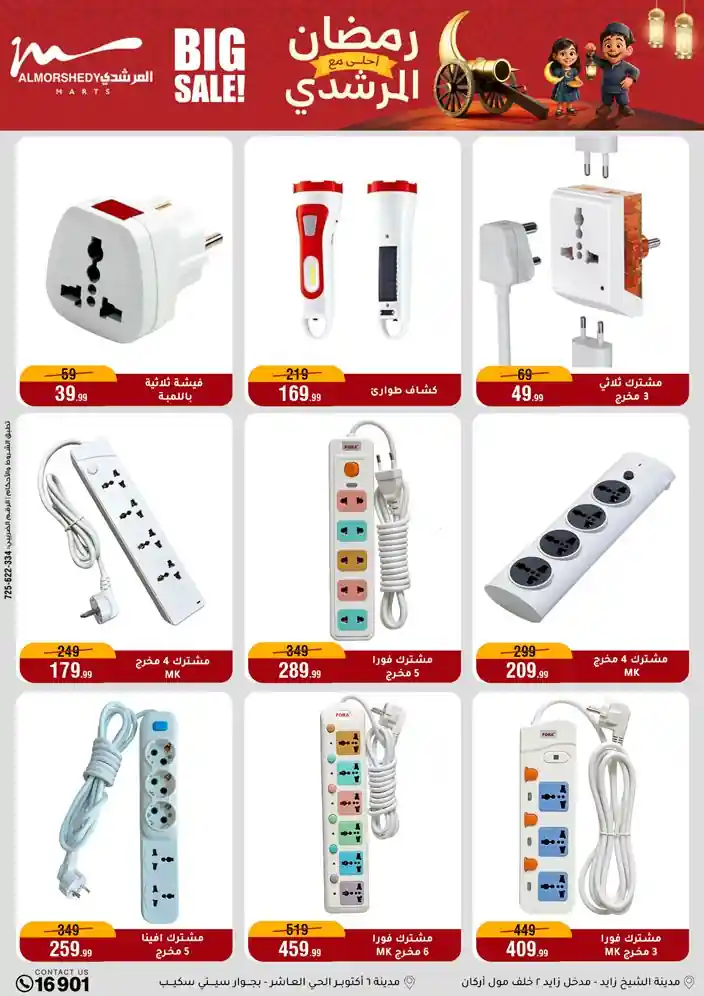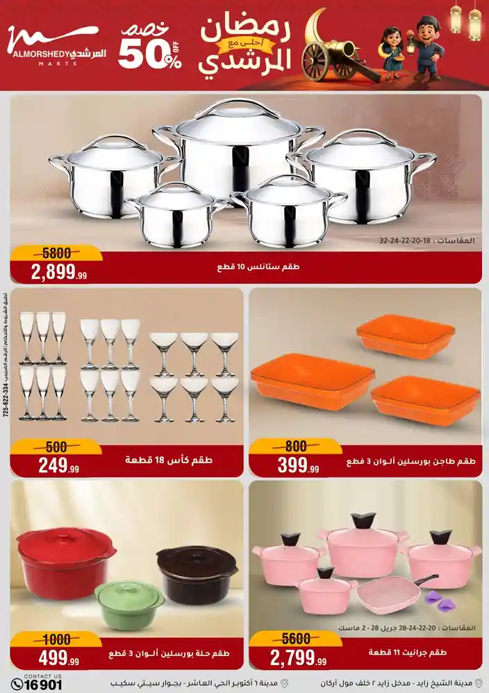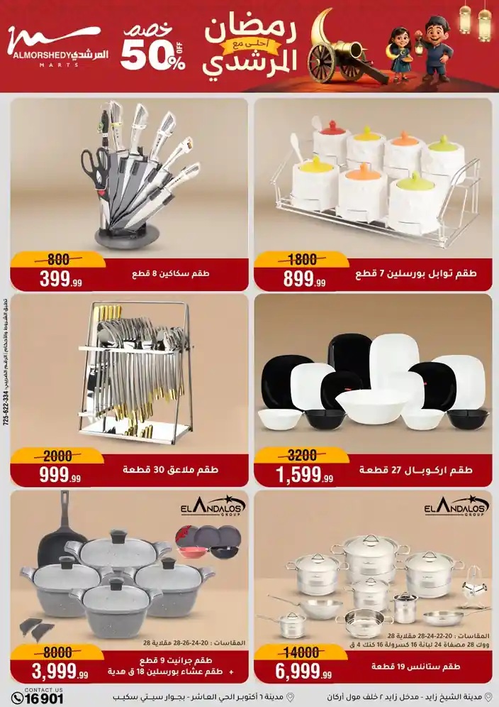 عروض جديدة من أسواق المرشدي مع اكبر مهرجان للتخفيضات في مصر خصومات حتى 70% وقسط براحتك بدون فوائد بأسعار العروض المخفضة على 12 شهر لحاملي بطاقة ائتمان CIB أو قسط براحتك مع VALU بدون مقدم حتى 60 شهر أو بدون مقدم وبدون فوائد مع نظام هاتريك وكمان النقل مجاني للقاهرة والجيزة والقليوبية على قسم الأجهزة الكهربائية والموبيليا والمراتب ( تطبق شروط المكان ) خصومات على جميع الأقسام أدوات منزلية – اجهزة كهربائية – مفروشات – موبيليا – نجف – سجاد – مراتب – ملابس رجالي وحريمي وأطفالي ومستلزمات ولعب الأطفال وجاليري وأقسام تانية كتير استمتع بالتسوق في أسواق المرشدي مع أكتر من 12 قسم و أكثر من 10,000 منتج يعني كل اللي بتحلم بيه عند المرشدي هتلاقيه