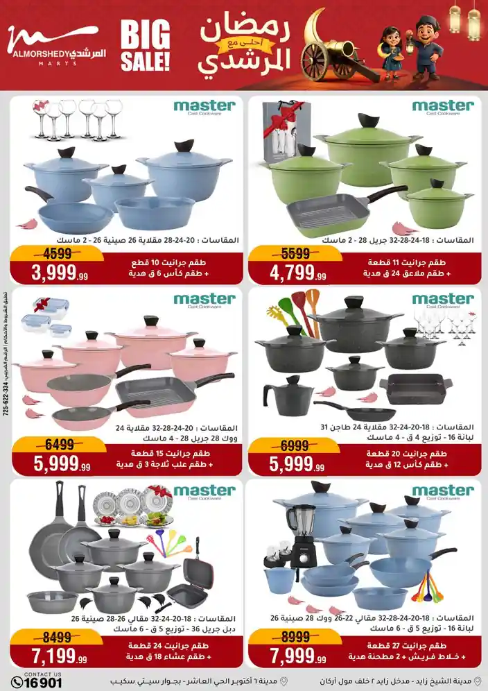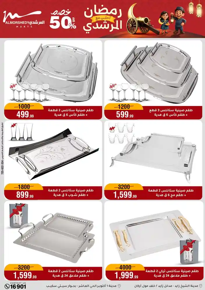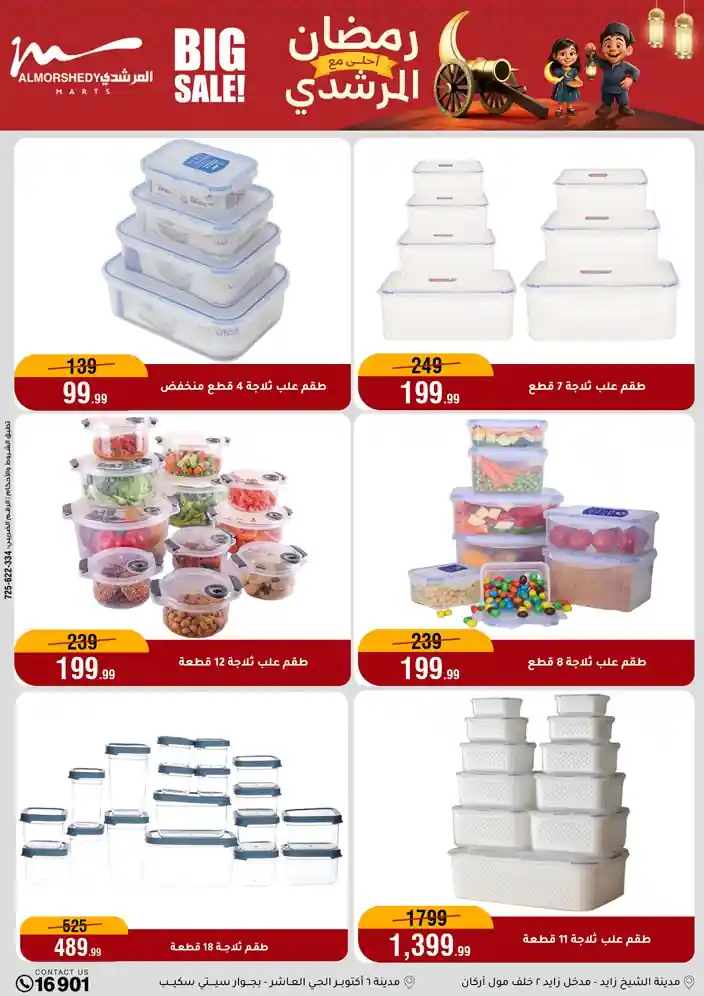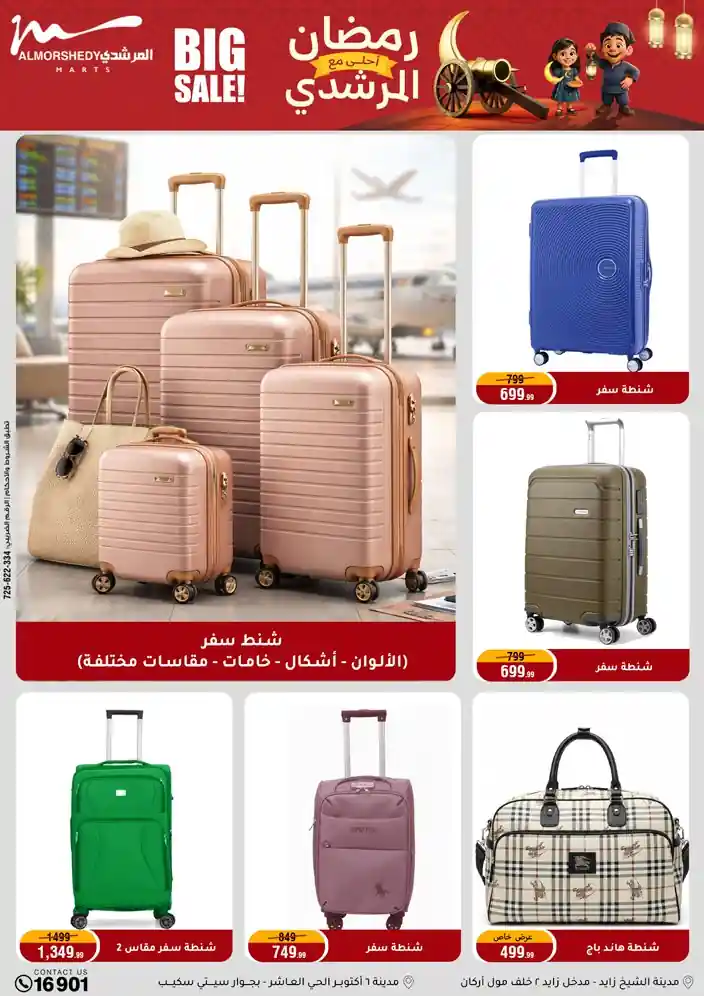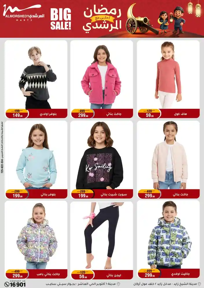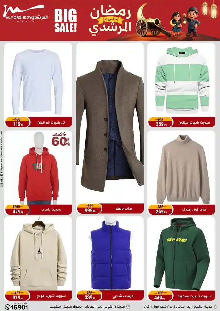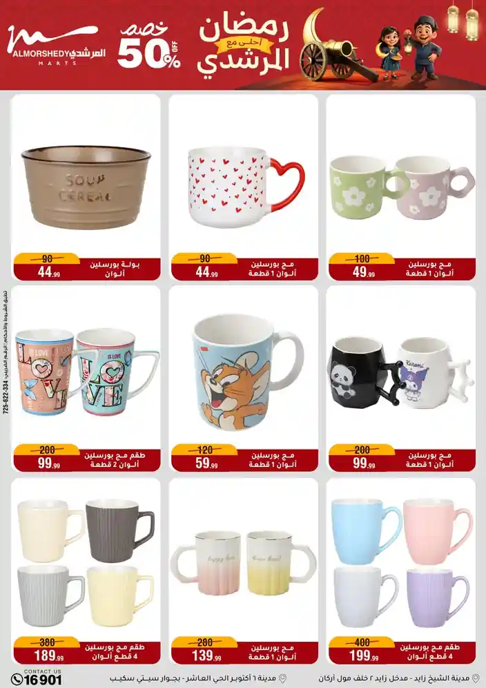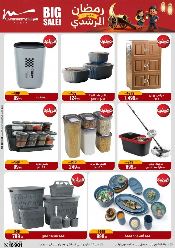 عروض جديدة من أسواق المرشدي مع اكبر مهرجان للتخفيضات في مصر خصومات حتى 70% وقسط براحتك بدون فوائد بأسعار العروض المخفضة على 12 شهر لحاملي بطاقة ائتمان CIB أو قسط براحتك مع VALU بدون مقدم حتى 60 شهر أو بدون مقدم وبدون فوائد مع نظام هاتريك وكمان النقل مجاني للقاهرة والجيزة والقليوبية على قسم الأجهزة الكهربائية والموبيليا والمراتب ( تطبق شروط المكان ) خصومات على جميع الأقسام أدوات منزلية – اجهزة كهربائية – مفروشات – موبيليا – نجف – سجاد – مراتب – ملابس رجالي وحريمي وأطفالي ومستلزمات ولعب الأطفال وجاليري وأقسام تانية كتير استمتع بالتسوق في أسواق المرشدي مع أكتر من 12 قسم و أكثر من 10,000 منتج يعني كل اللي بتحلم بيه عند المرشدي هتلاقيه