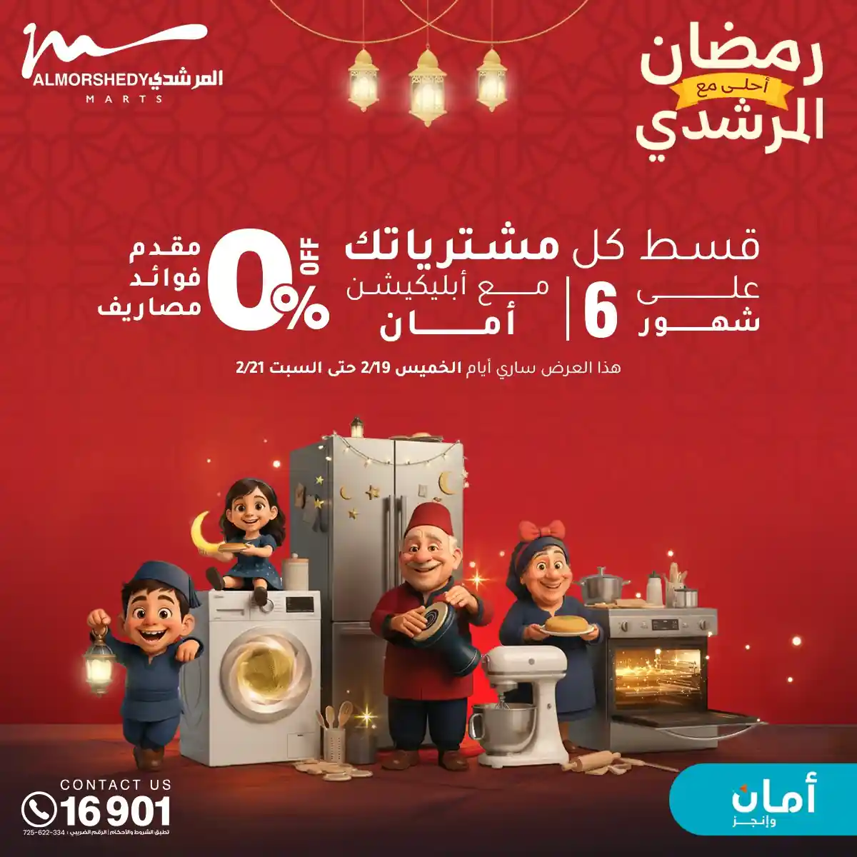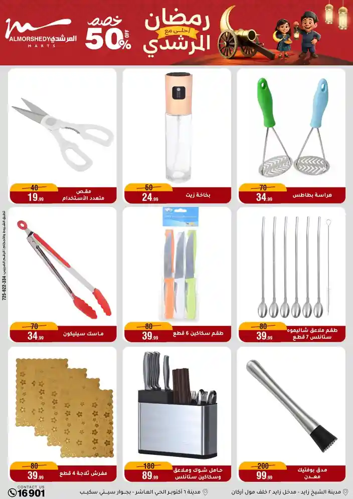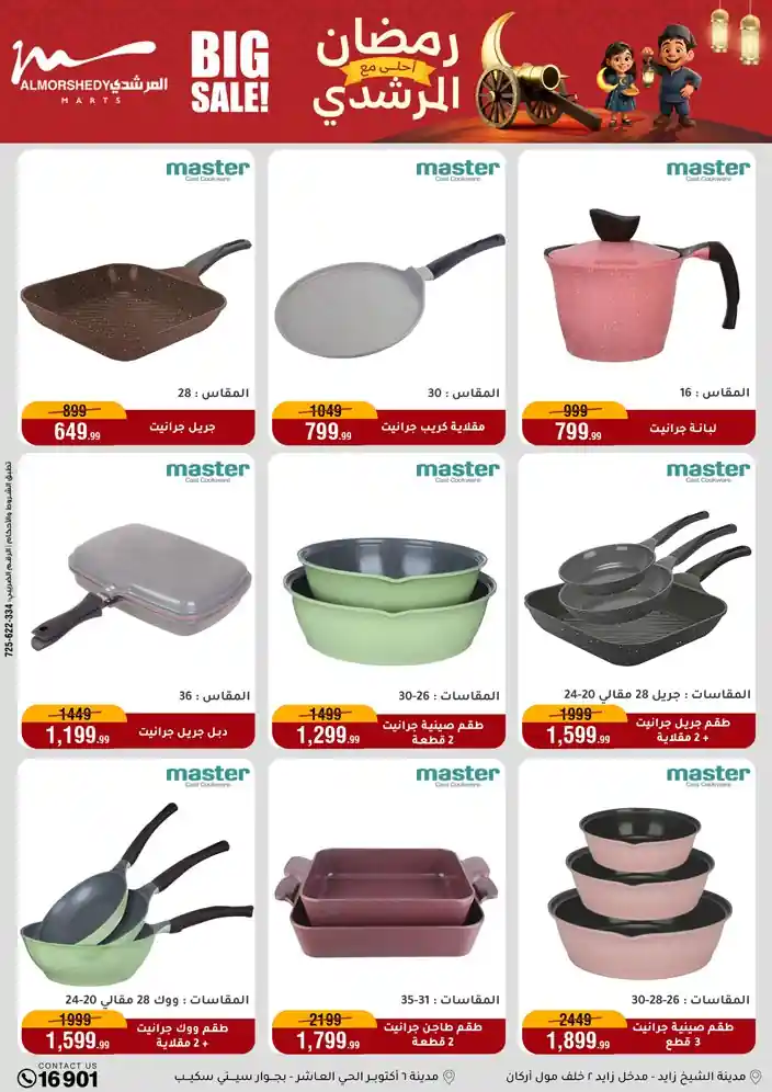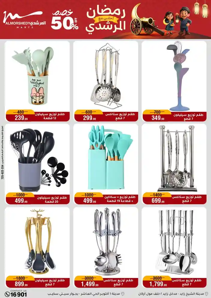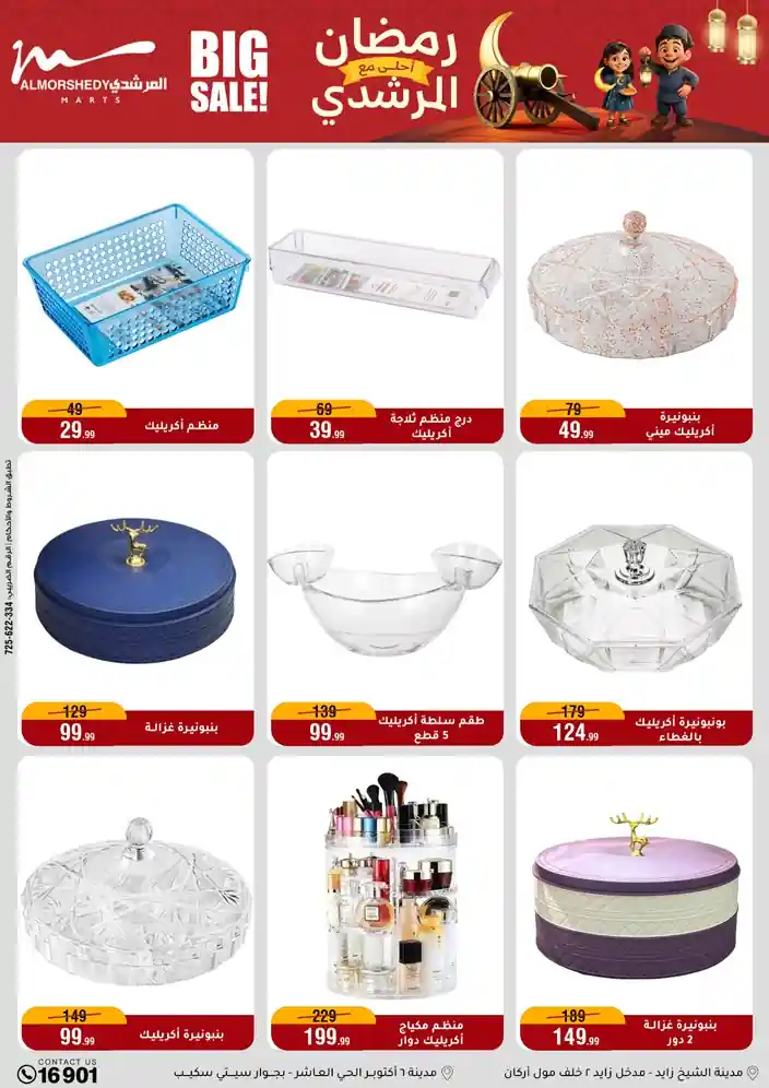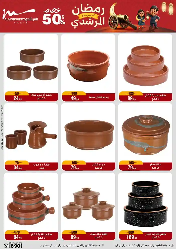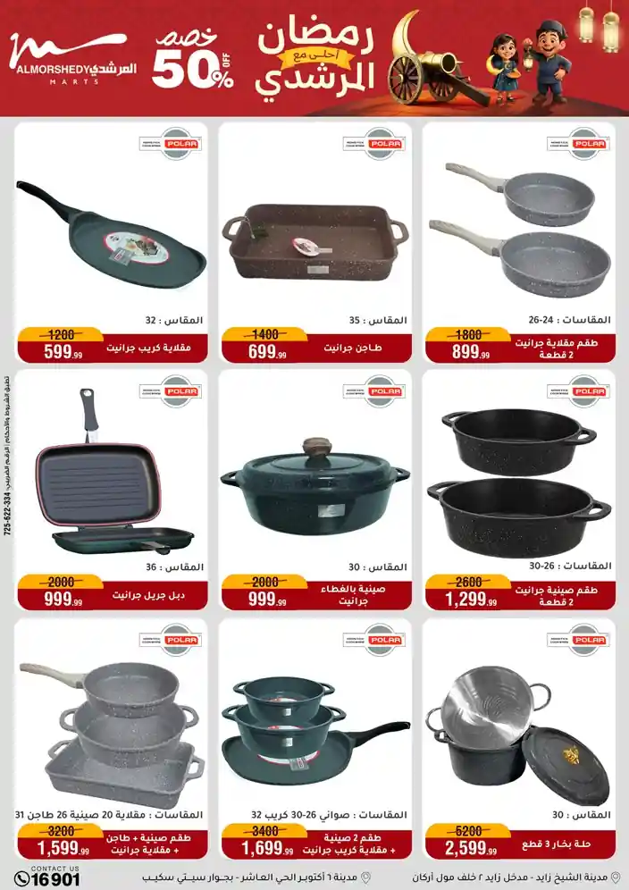 عروض جديدة من أسواق المرشدي مع اكبر مهرجان للتخفيضات في مصر خصومات حتى 70% وقسط براحتك بدون فوائد بأسعار العروض المخفضة على 12 شهر لحاملي بطاقة ائتمان CIB أو قسط براحتك مع VALU بدون مقدم حتى 60 شهر أو بدون مقدم وبدون فوائد مع نظام هاتريك وكمان النقل مجاني للقاهرة والجيزة والقليوبية على قسم الأجهزة الكهربائية والموبيليا والمراتب ( تطبق شروط المكان ) خصومات على جميع الأقسام أدوات منزلية – اجهزة كهربائية – مفروشات – موبيليا – نجف – سجاد – مراتب – ملابس رجالي وحريمي وأطفالي ومستلزمات ولعب الأطفال وجاليري وأقسام تانية كتير استمتع بالتسوق في أسواق المرشدي مع أكتر من 12 قسم و أكثر من 10,000 منتج يعني كل اللي بتحلم بيه عند المرشدي هتلاقيه