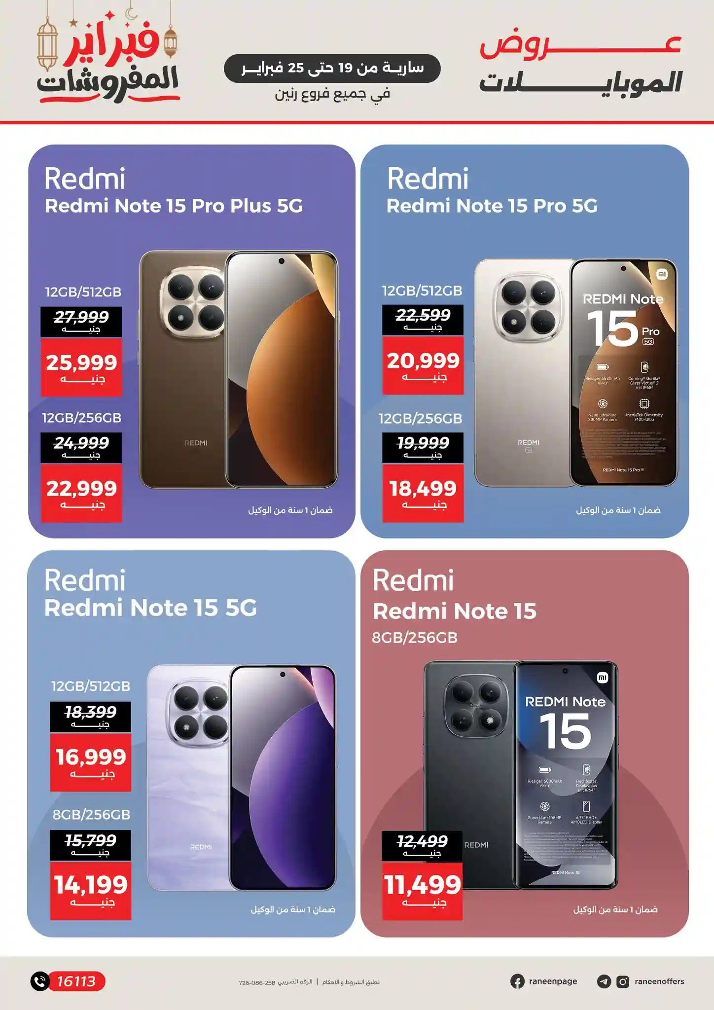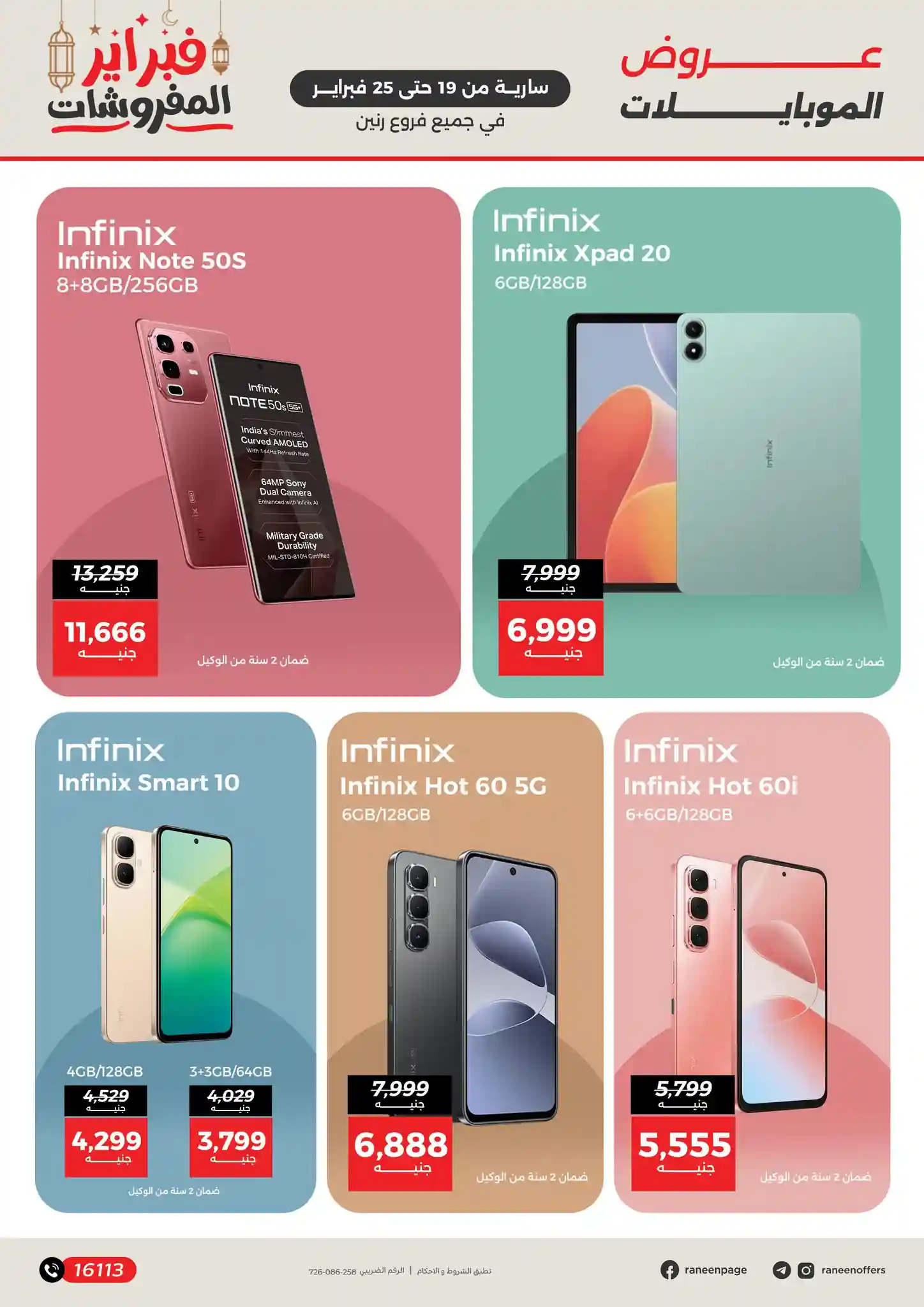 تسرى عروض رنين من يوم 19 فبراير حتى 25 فبراير 2026 تخفيضات الموبايلات و الاكسسوارات بجميع الفروع